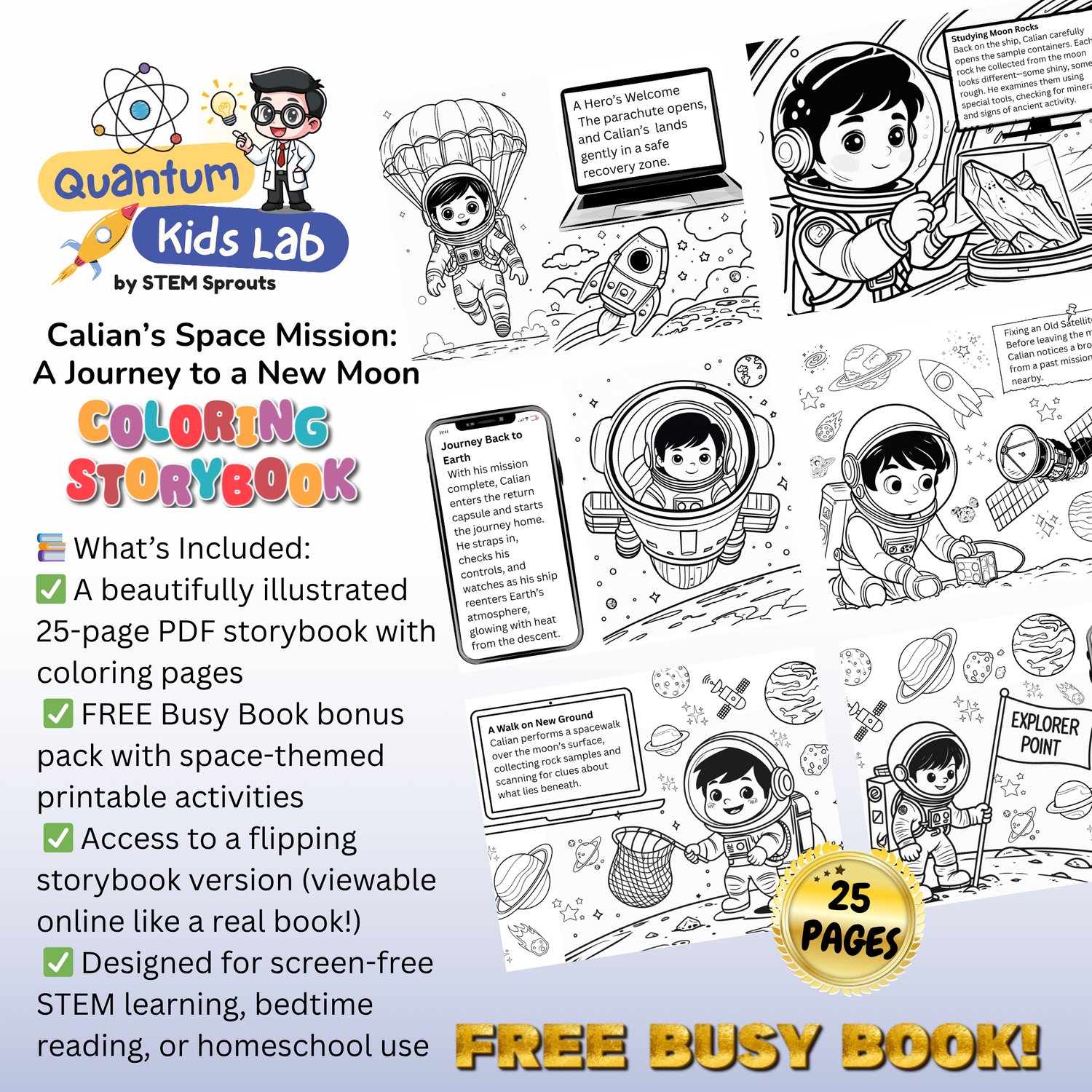 ποΈ Kids will enjoy coloring while learning about space travel, moon exploration, and scientific discovery. Great for bedtime reading, STEM enrichment, or homeschooling.
