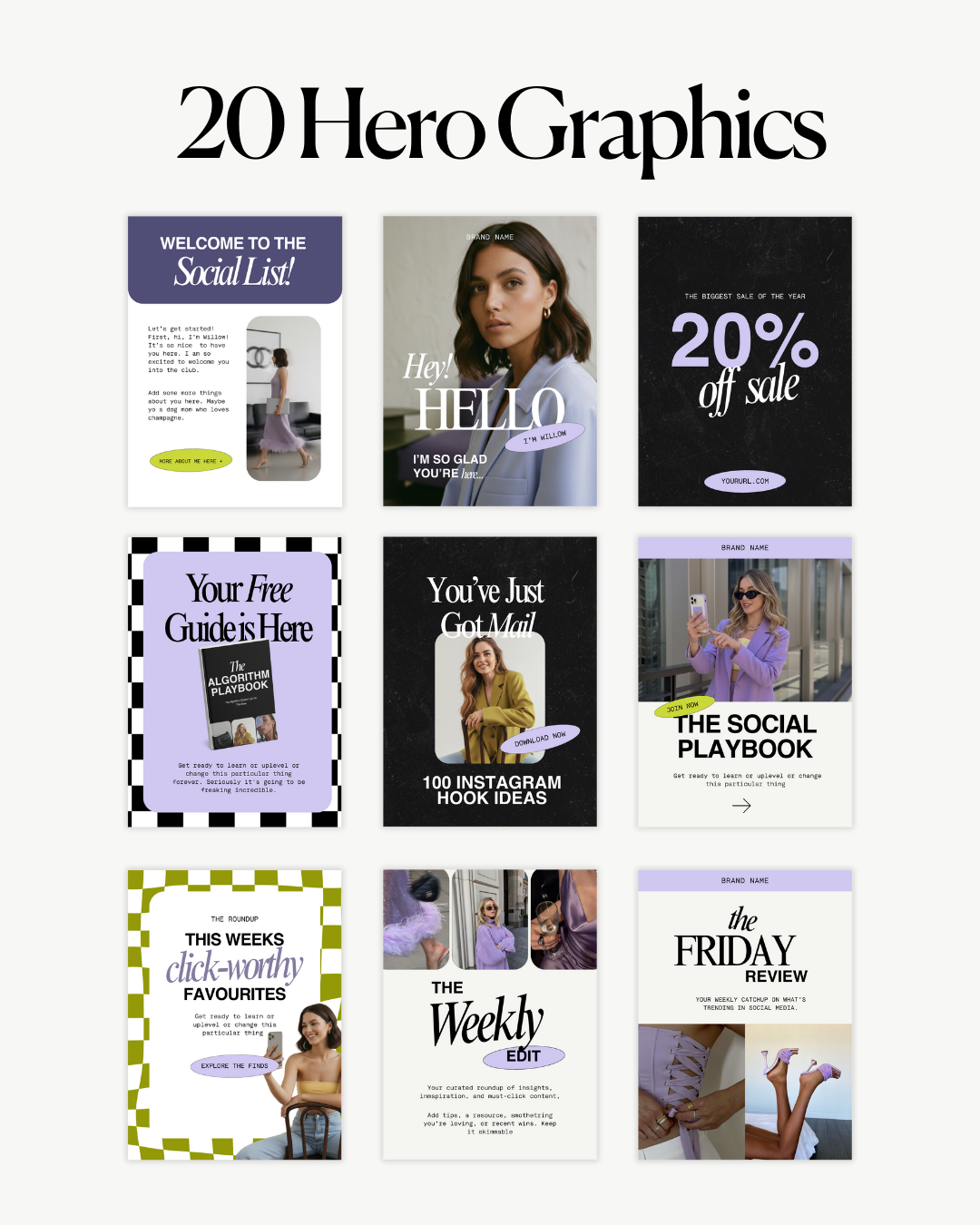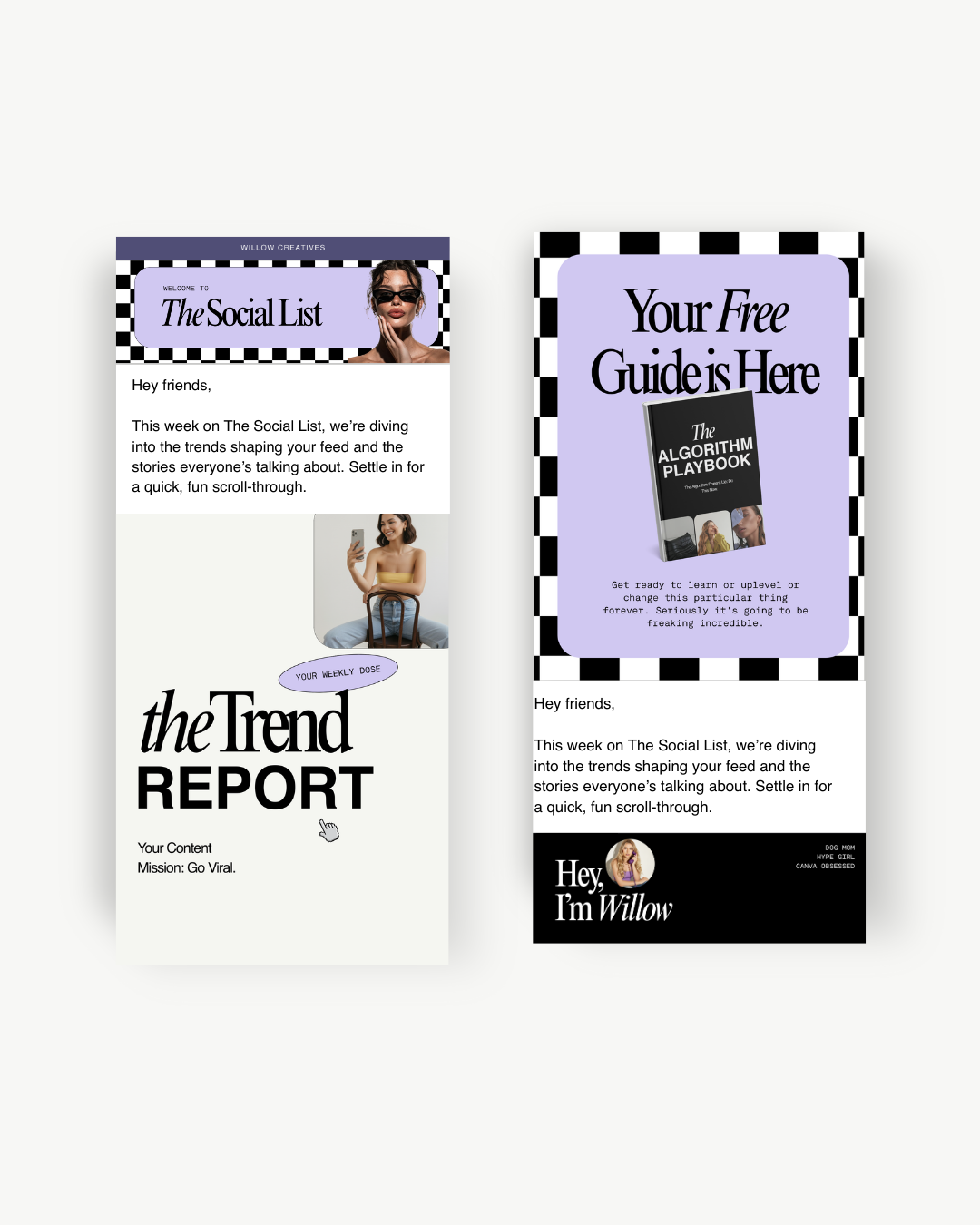 The best part? These graphics can be imported easily into popular email platforms like Flodesk and Kit, so you can drag, drop, and send without breaking your workflow or your brain.
