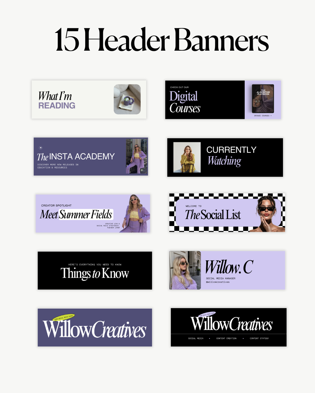 - 15 header banners to frame your newsletters, weekly roundups, and promos in a consistent on-brand style