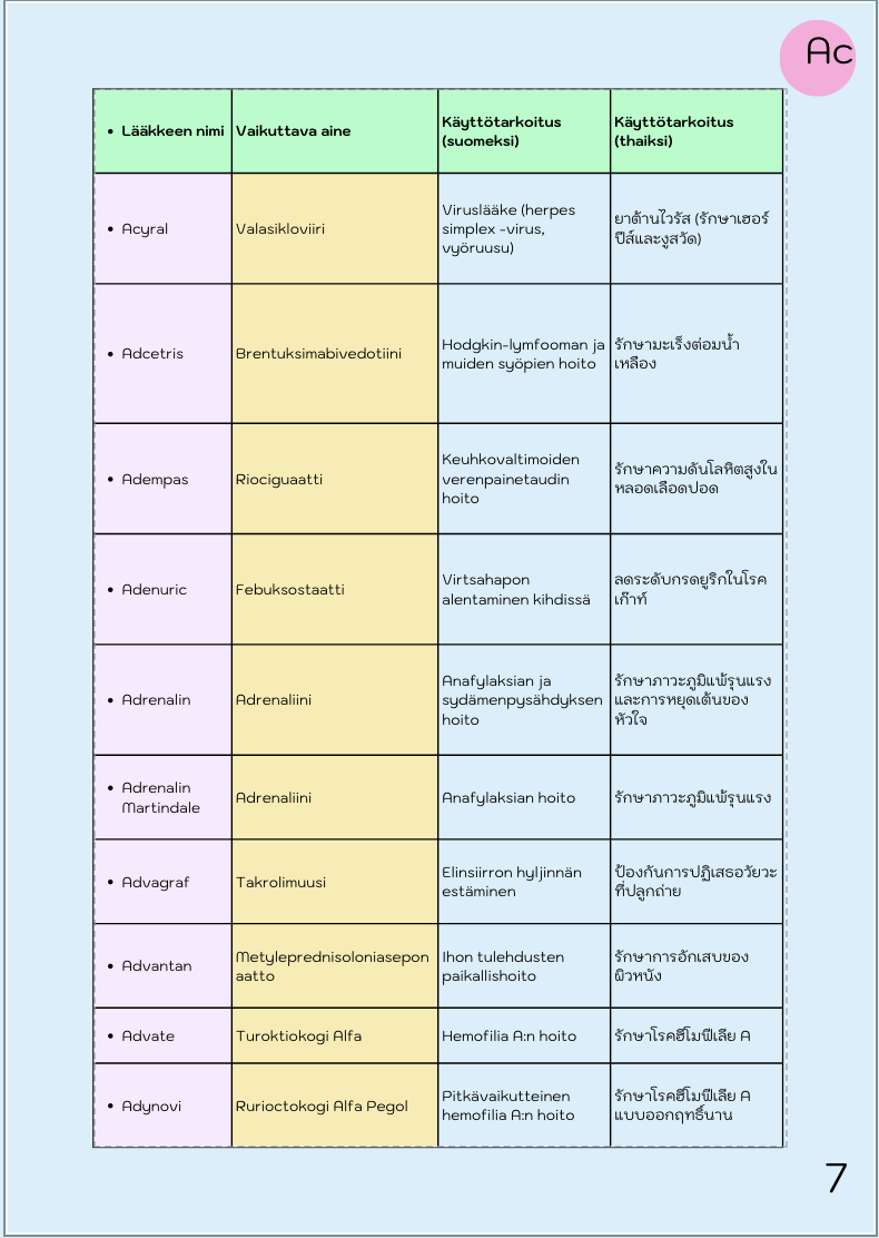 ✅ คำศัพท์เกี่ยวกับยาและการใช้ยา ทั้งภาษาฟินแลนด์และไทย
