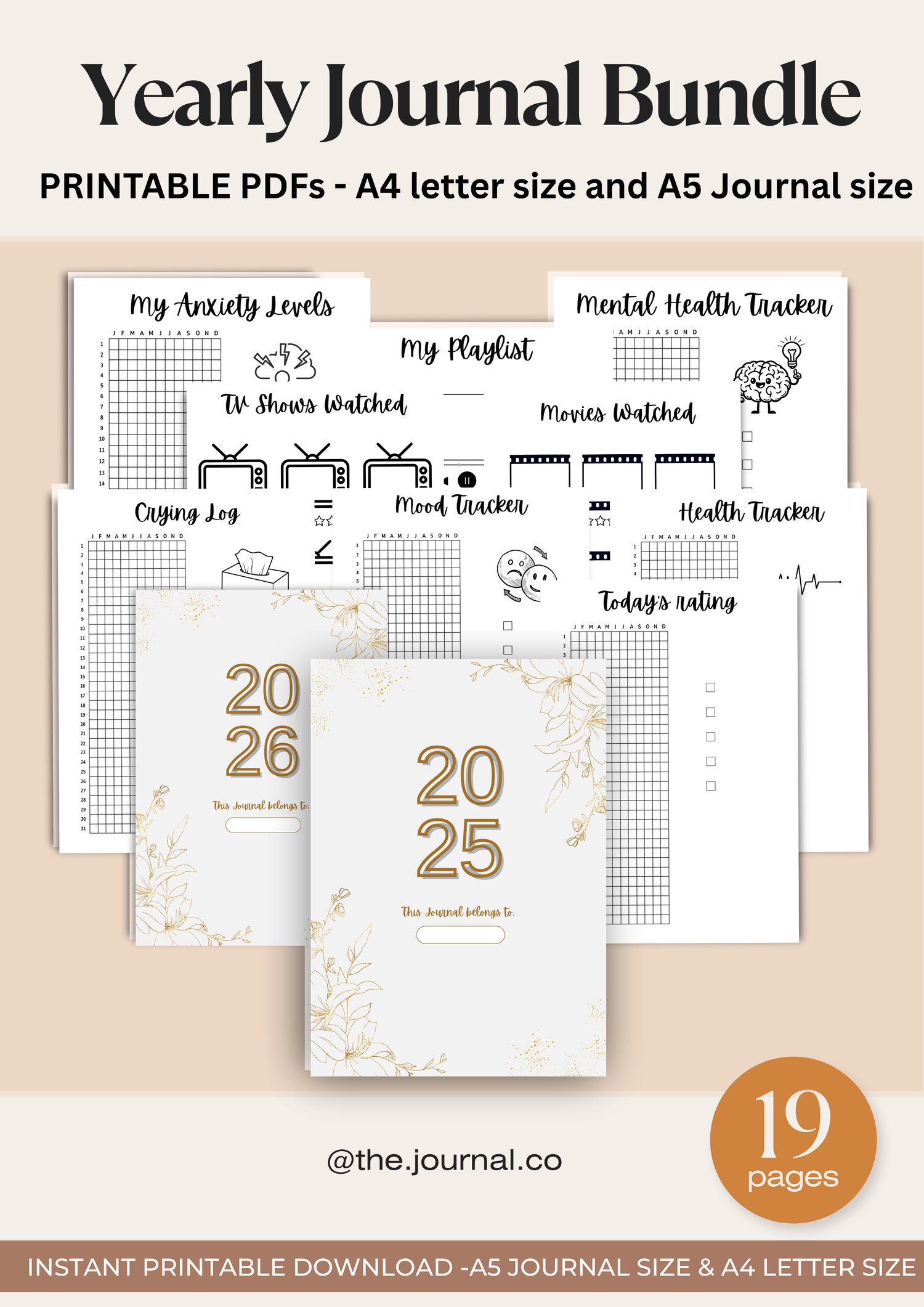 Yearly Journal Bundle (19 Pages) - Printable A4 letter size & A5 Journal size pages