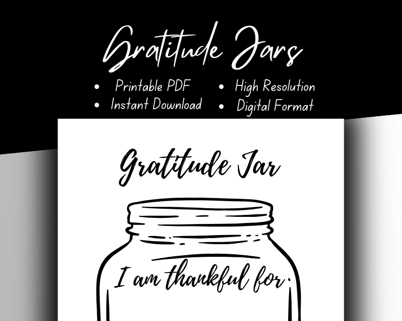 Gratitude Jars Printable PDF | Instant Download | High Resolution | Digital Format