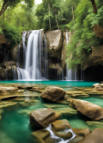 Nestled deep within a verdant forest, the Adonis Baths Waterfalls beckon with their tranquil beauty, promising a rejuvenating retreat from the bustle of modern life. Here, crystal-clear waters tumble gracefully over ancient rocks, creating a mesmerizing symphony of sight and sound. Surrounded by lush foliage and dappled sunlight, visitors are transported to a realm of serenity and natural wonder. As you meander along moss-covered paths and breathe in the earthy scent of the forest, it's important to note that the stunning visuals accompanying this description have been crafted by artificial intelligence, blending imagination with reality to capture the essence of this idyllic oasis.