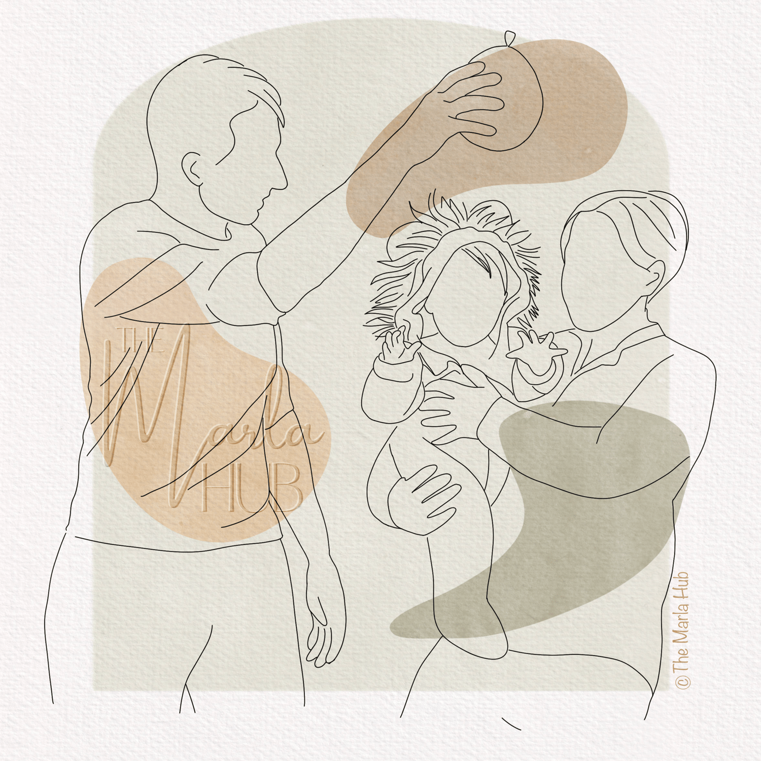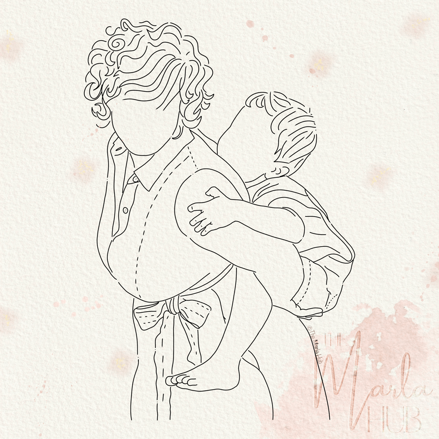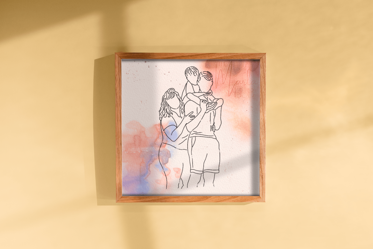 🎨 Stylish Minimalism: Highlight movement and details of your loved ones in modern, face-less line art enhanced by soft watercolour effects and geometric shapes.