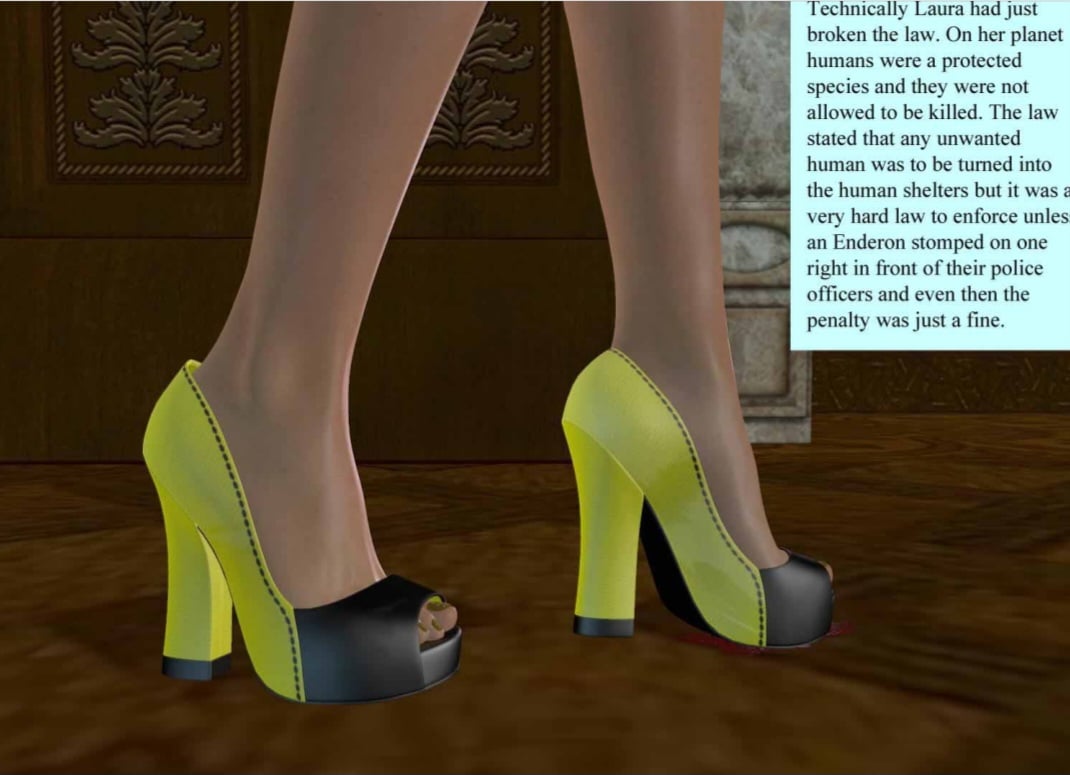 Laura was not as kind as many Enderons. She viewed the humans who had been transported to her planet as pests. She plerated them when they belonged to her friends but the ones that ran wild she refused to tolerate. So instead of capturing hem and turning them over to a human shelter she just killed them. Jeff was just a poor human who had managed to escape from his previous owner He. snuck into Laura's mansion looking for food. Unfortunately for him Laura spotted him out in he open and he had nowhere to hide...