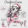 Christmas nurses. 4 Whimsical nurses with different hairstyles and 2 trees; one with and one without text. 6 PNGs
