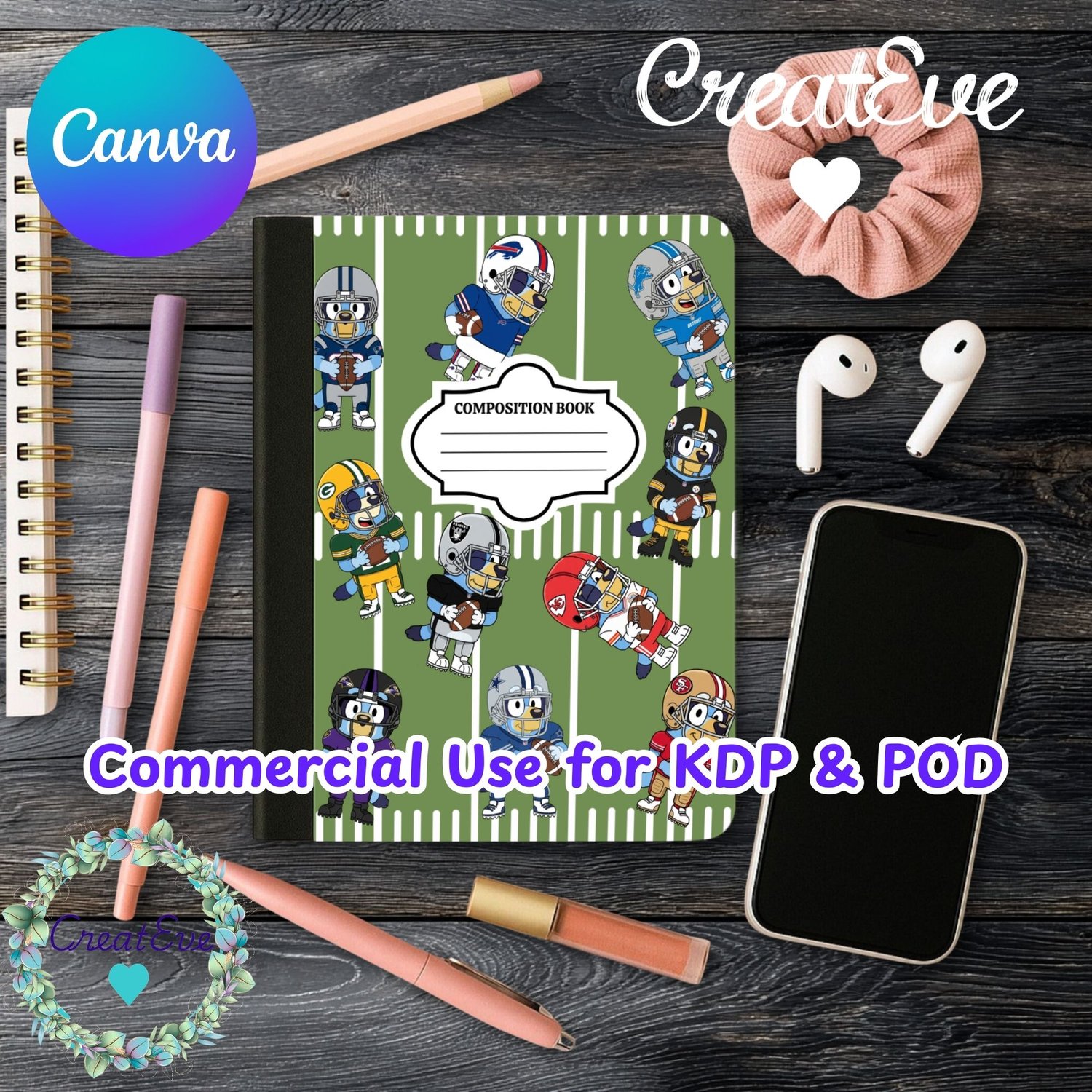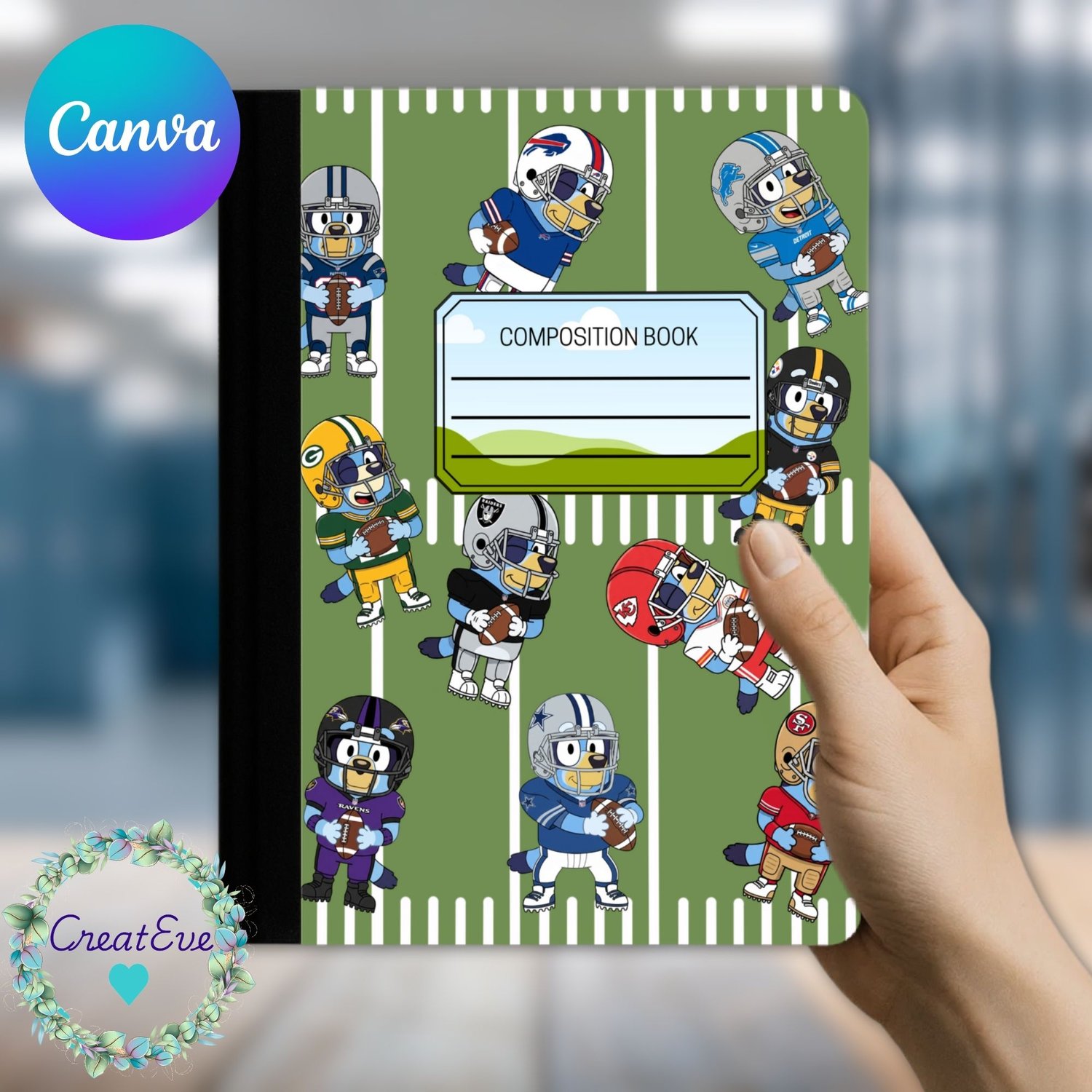 Bluey NFL Composition Notebook 2 Sizes Canva Editable