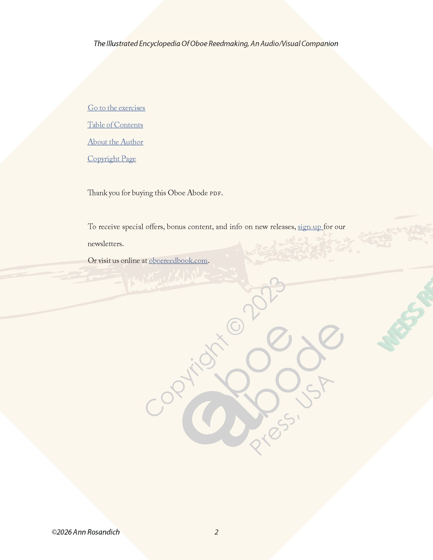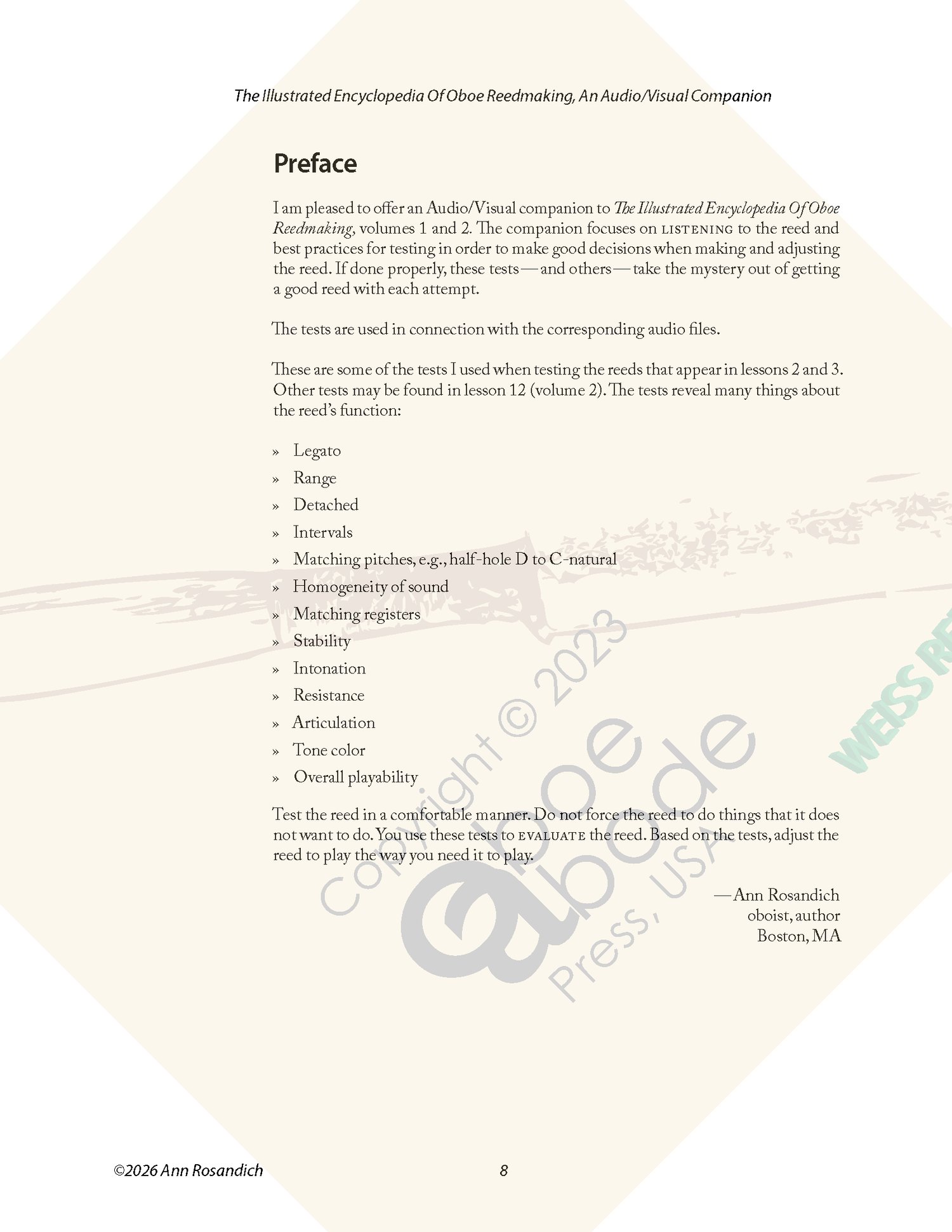 - These tests are not included in The Illustrated Encyclopedia Of Oboe Reedmaking