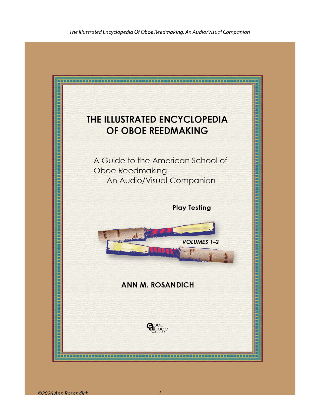 Play Testing for THE ILLUSTRATED ENCYCLOPEDIA OF OBOE REEDMAKING