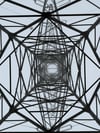Power pylons from below
