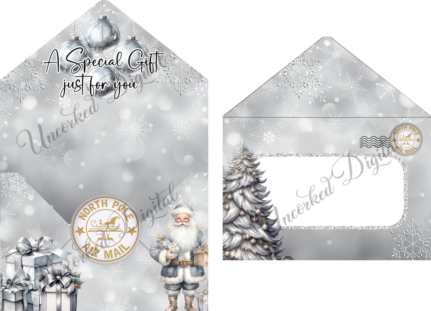 Grey, Pink and Blue gift envelope designs to fit the blanks from Woodform Crafts.