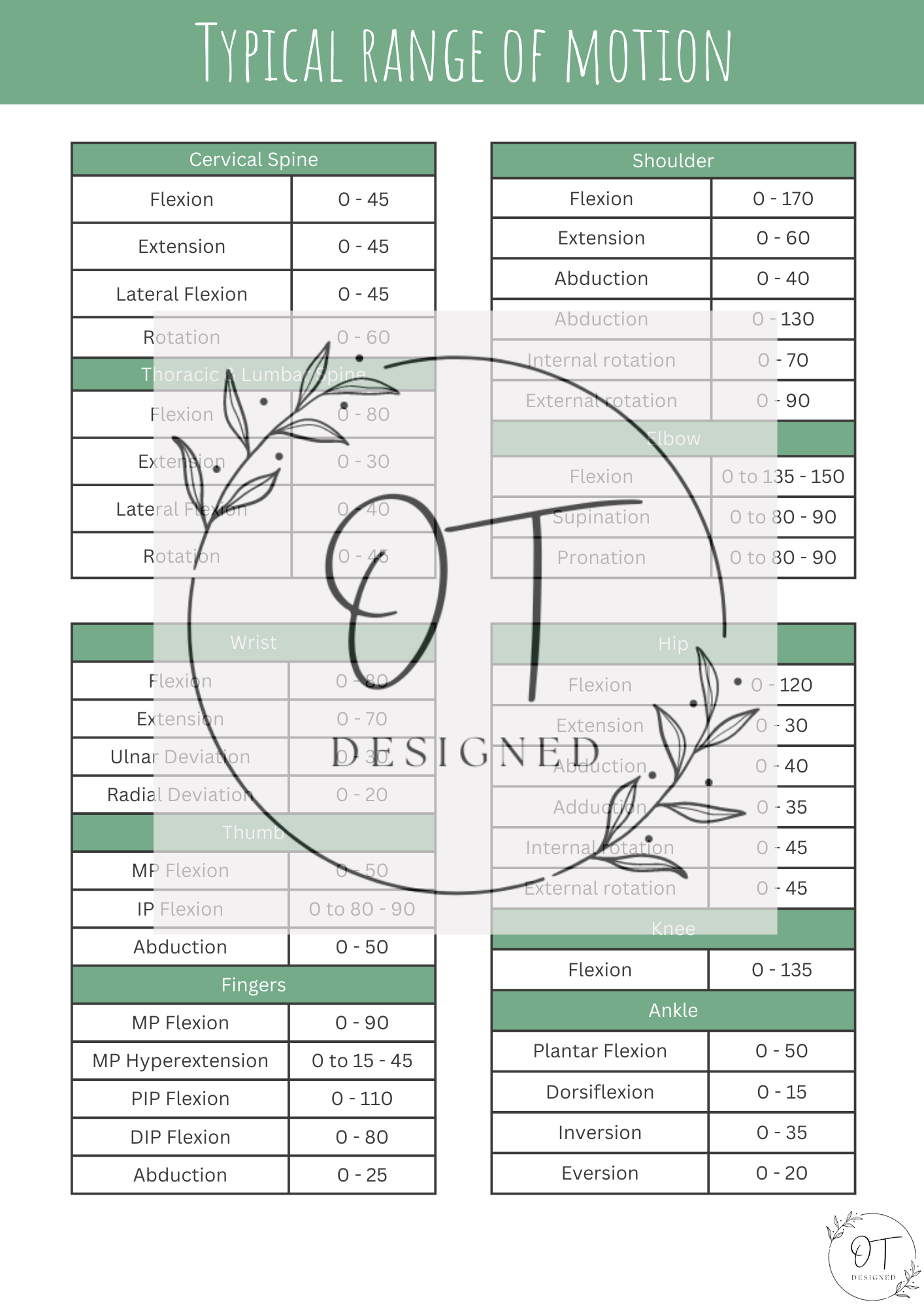 Typical Range of Motion