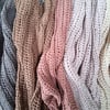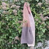 A textured scarf, in linen blend yarn, in 5 wide stripes.