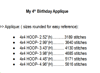 - 4x4 HOOP- 2.53” (H)............3189 stitches