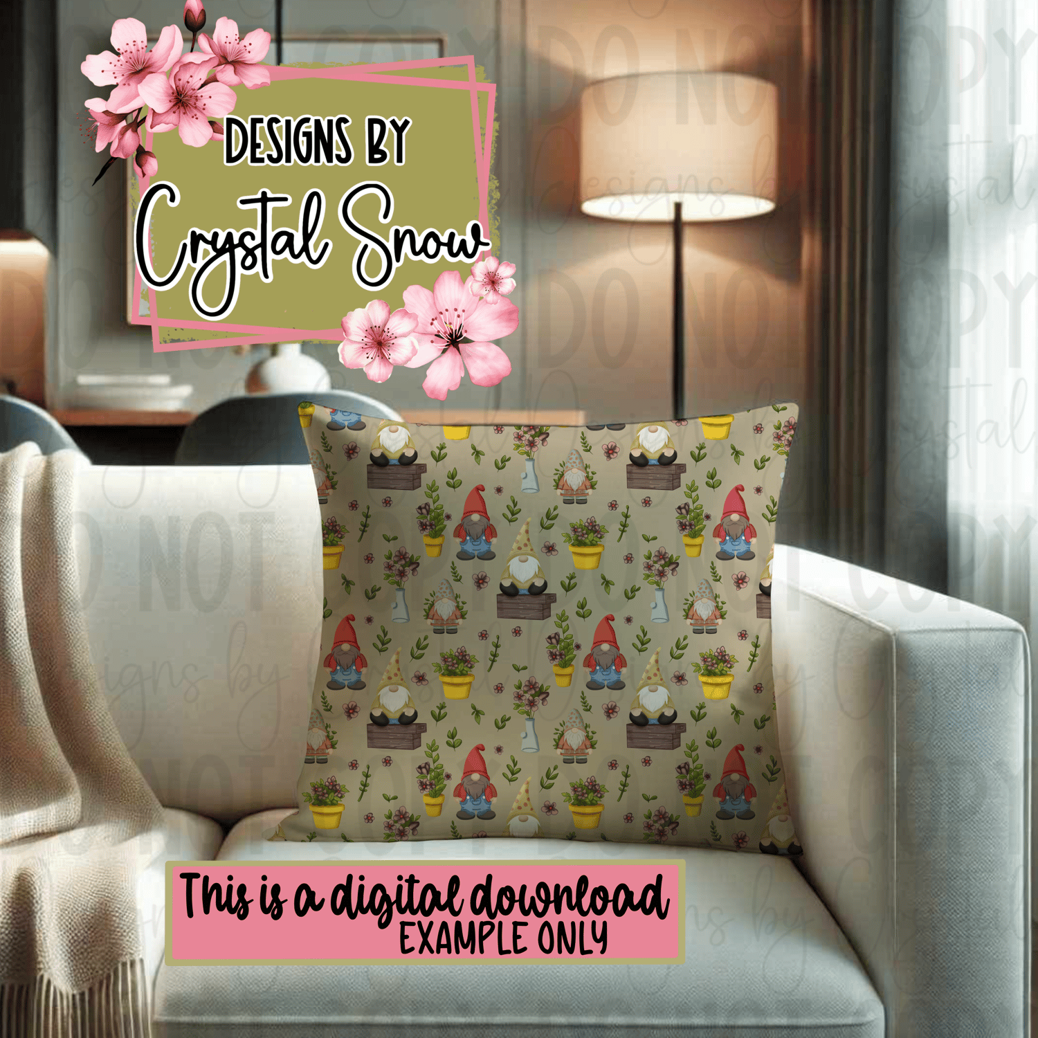 Whimsical Garden Gnomes Seamless Pattern – Floral Gnome Clipart Background – Cute Spring Digital Paper for Sublimation & Crafts