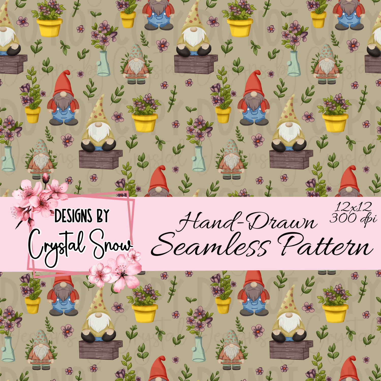 Add some gnome-grown charm to your next project! This seamless garden gnome pattern is full of spring vibes, florals, and whimsy.