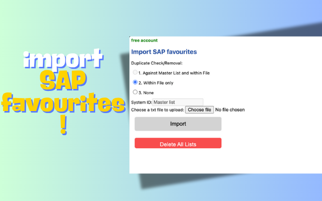 - Import unlimited SAP favorites files and manage separate lists for each system you work with.