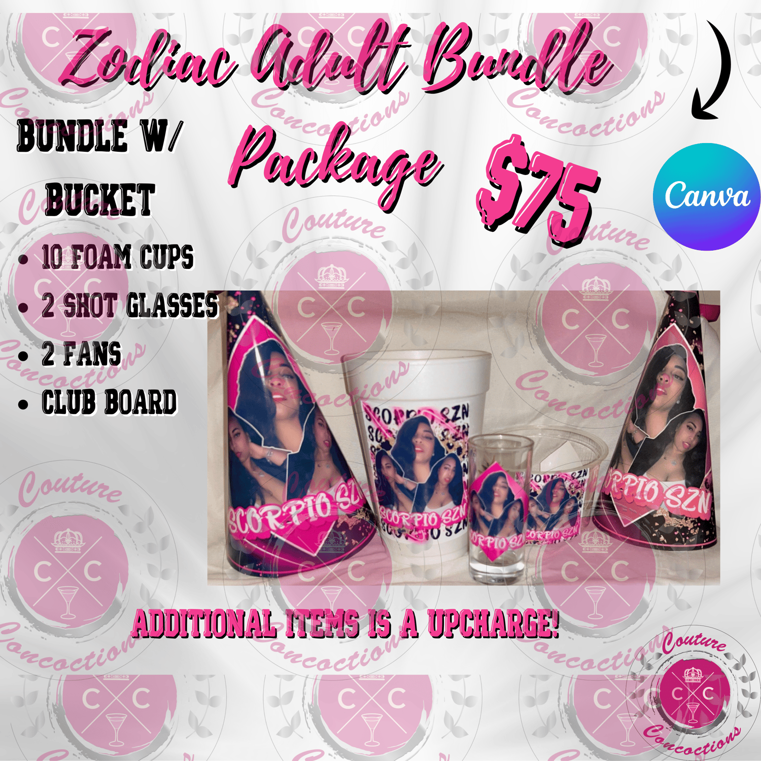 Custom Zodiac Adult Party Package w/Bucket - Pick 4