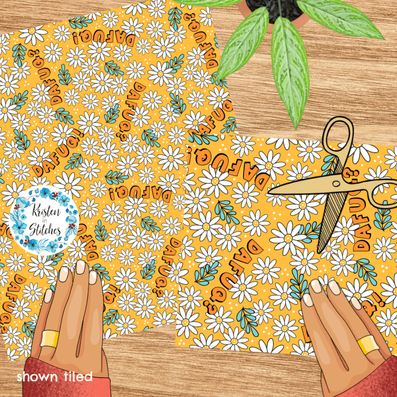 Dafuq? Seamless Pattern, Sarcastic Swear Words, Yellow Floral