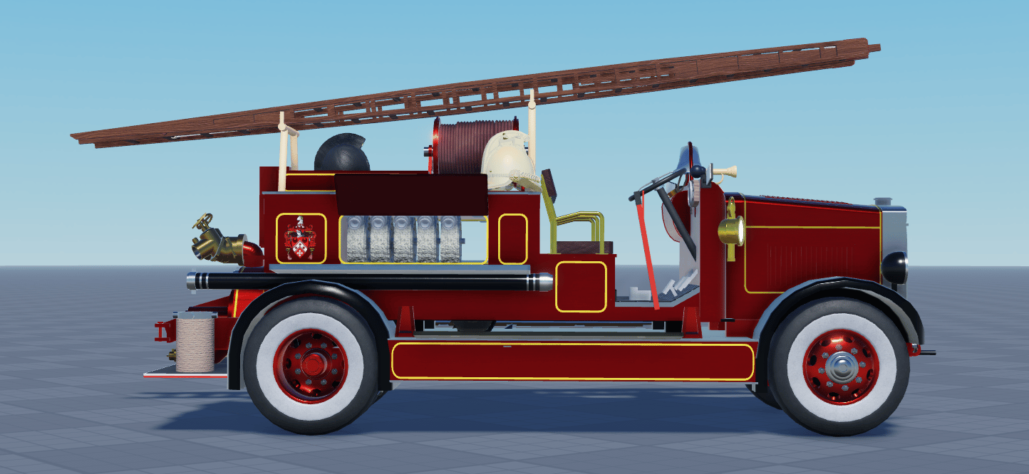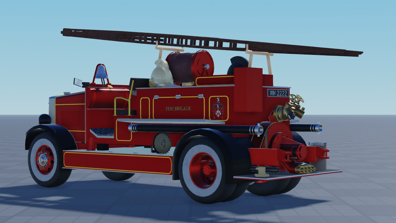 Highly Detailed 1920s era Leyland Fire engine, Detailed chassis and working bell, standard A-chassis