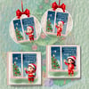 Cute Christmas girl and boy gazing through the window and waving to Santa. “May you never be too old to search the skies on Christmas Eve” text file included. Individual elements to mix and match. 15 PNG files