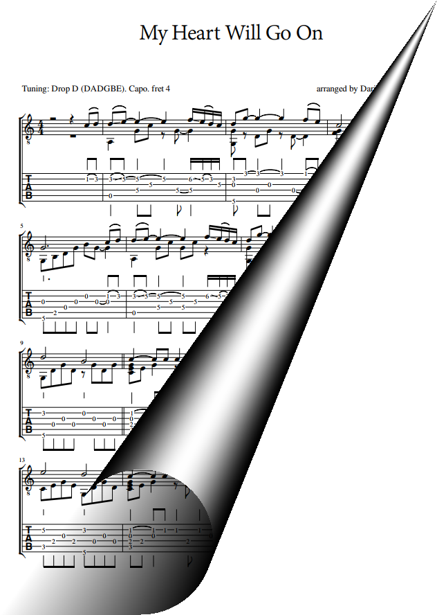 Tuning: Drop D (DADGBE), capo on 4th fret
