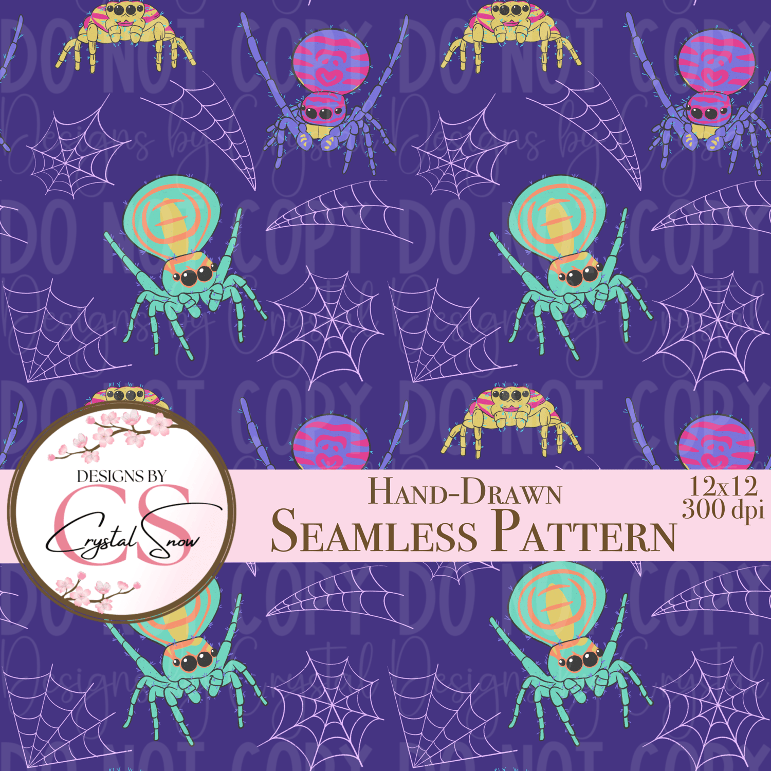 Bring your Halloween crafts to life with this bold and vibrant seamless spider design! Featuring hand-drawn neon jumping spiders with quirky details, glowing colors, and playful web accents, this digital pattern is perfect for making your creations stand out.