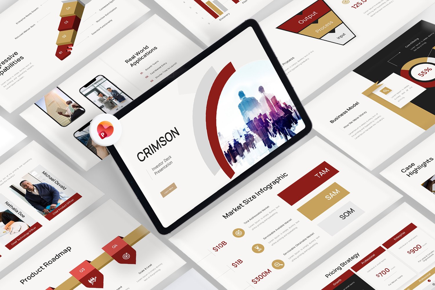Built with a calm red, brown, and dark palette, this template focuses on clarity, structure, and execution ready storytelling.