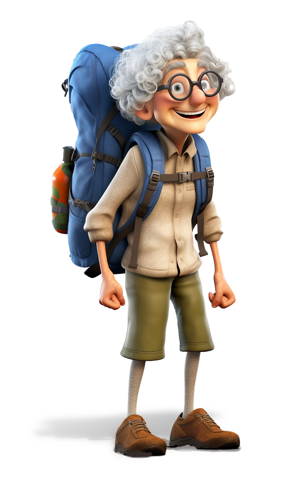This illustration is a perfect representation of active aging. It showcases a senior woman embracing the joys of backpacking, illustrating that age is no barrier to pursuing one's passions. Her warm smile and the hiking backpack on her back symbolize a sense of readiness, independence, and a zest for life. Use this to inspire and connect with your audience, promoting the idea that adventure knows no age limit.