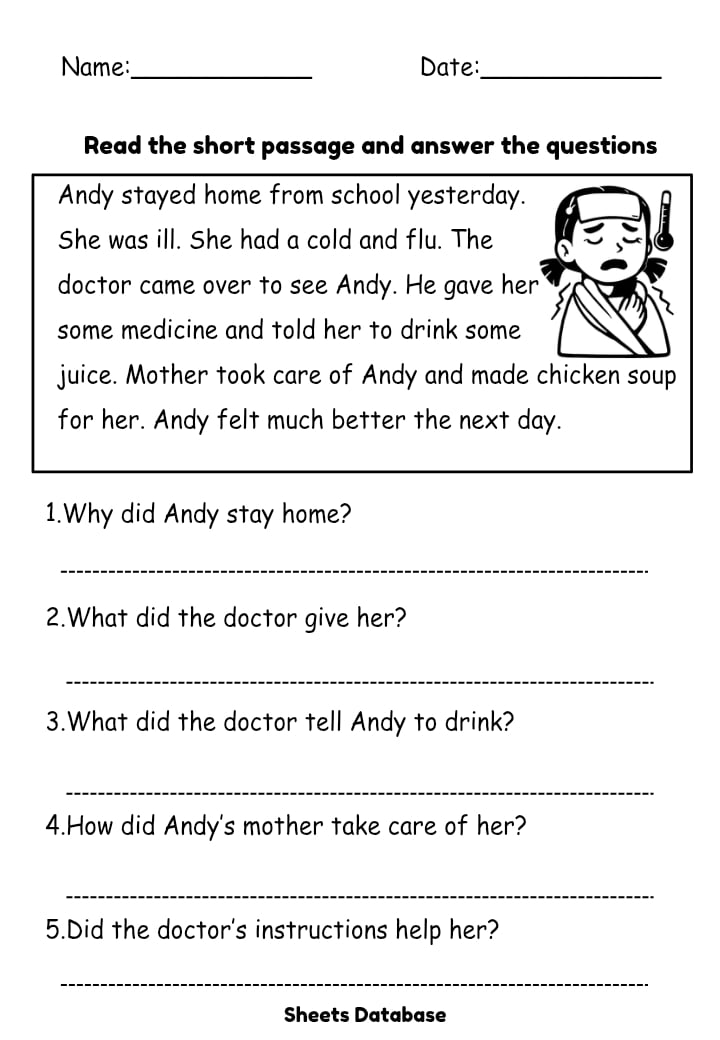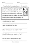 Each worksheet contains a short, simple passage followed by WH-questions that encourage students to find key details, understand meaning, and respond correctly. The texts use age-appropriate vocabulary and sentence structure, making them ideal for early readers.