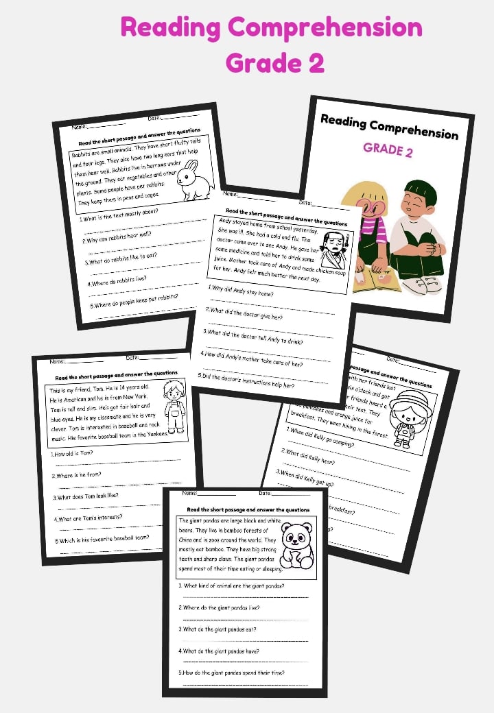 This resource includes a set of Grade 2 reading comprehension worksheets designed to help young learners improve their reading, understanding, and answering skills.