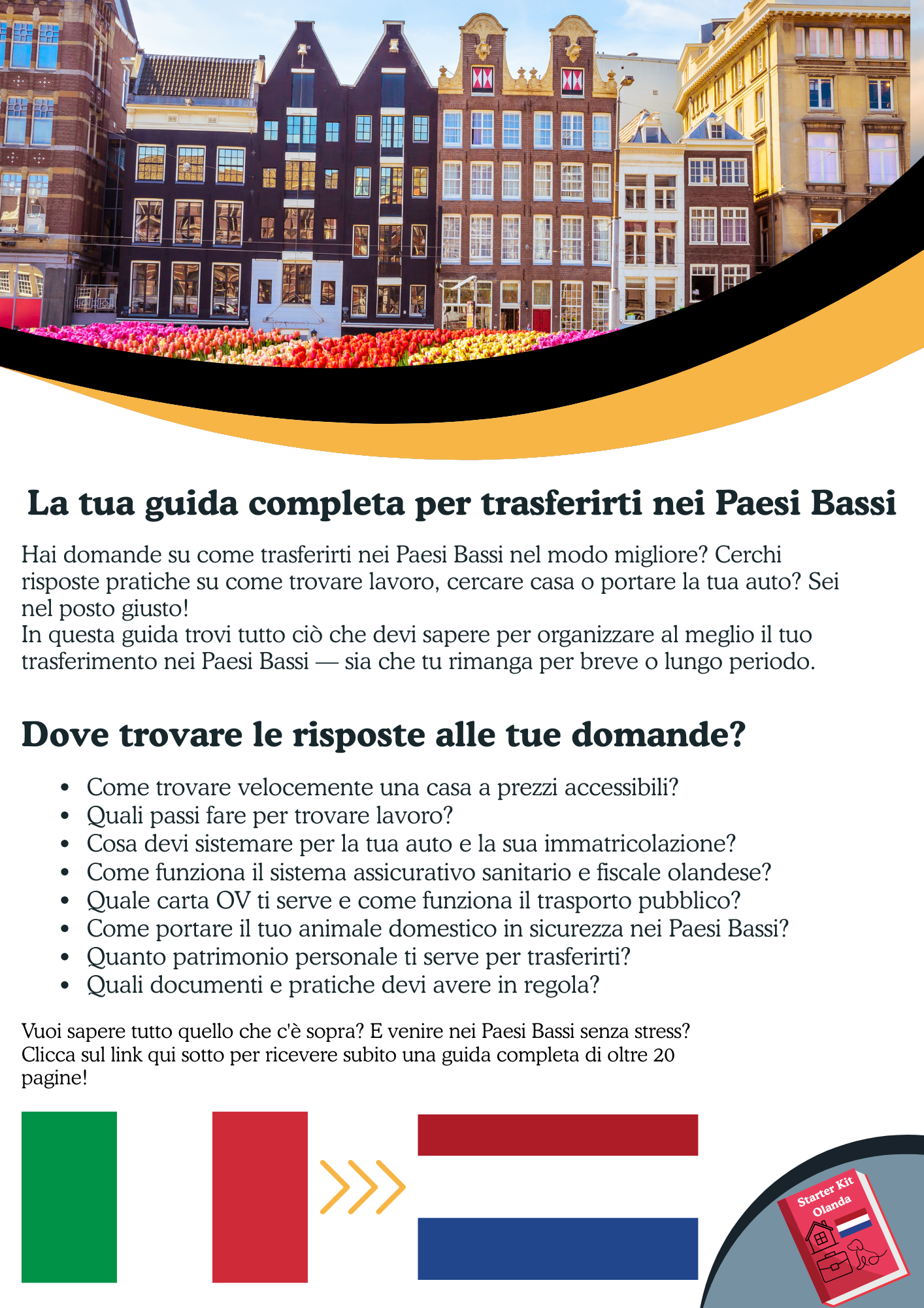 Hai domande su come trasferirti nei Paesi Bassi nel modo migliore? Cerchi risposte pratiche su come trovare lavoro, cercare casa o portare la tua auto? Sei nel posto giusto!
