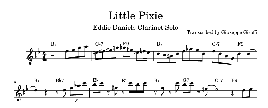 Eddie Daniels - Transcription - Little Pixie - Clarinet Solo (Bb)