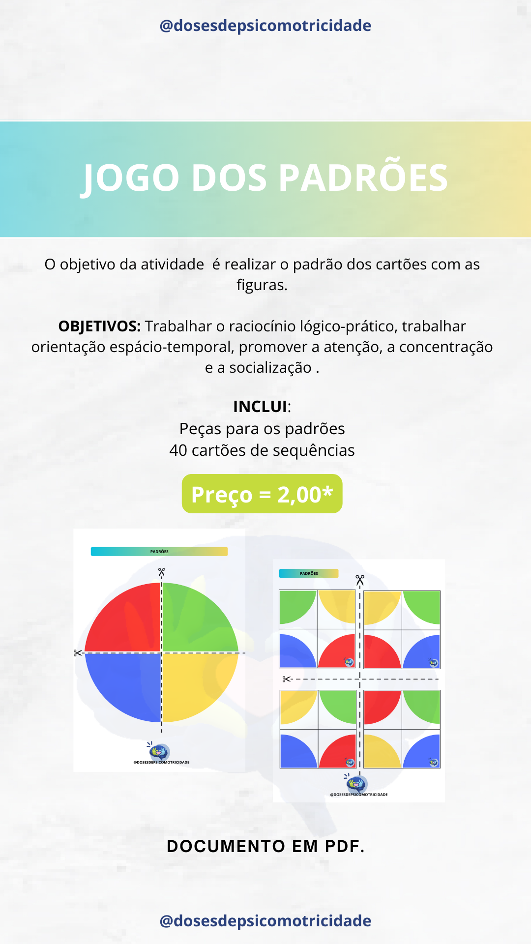 O objetivo da atividade é realizar o padrão dos cartões com as figuras.