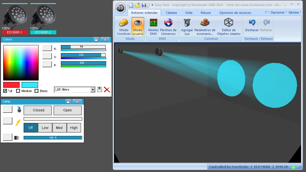 Esta Librería SSL2 está optimizada para trabajar con Magic 3d Easy View. Es decir para ver una representación 3D de las secuencias que estemos realizando con Freestyler, QLC+ o cualquier otro soft que se conecte con Magic 3d.