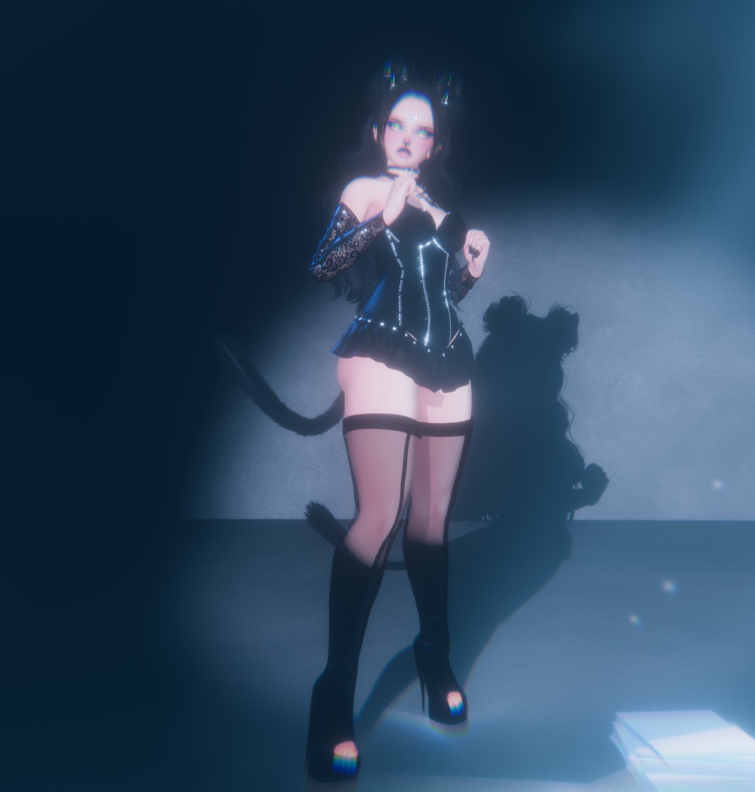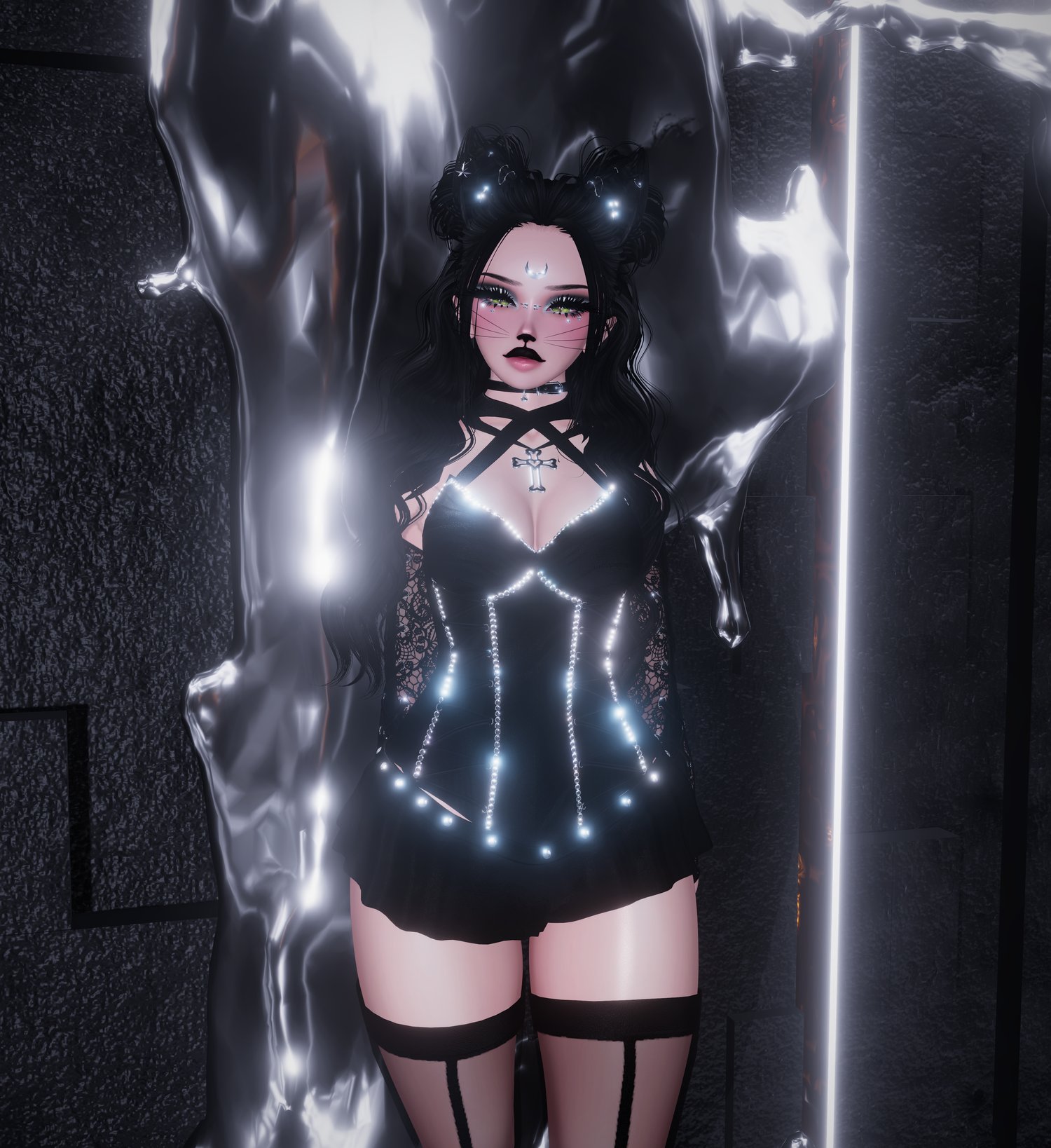 Body (edited by me)γ» Head (edited by me)γ» Seamless Head-Neck Merge (edited by me) γ» Lashesγ» Eyeshadow (edited by me) γ» Blink Animation γ» VRCFuryγ» Eyes γ» Gogoloco γ» Most Hairs & Tank (edited by me) γ»Moonbun Hair γ» Halfup Hair γ» Civilian Skirt γ» Warrior Boots, Neko Ears & Bushy Tail γ» Warrior Bootsv2 γ» Neko Goddess Set γ» Neko Warrior Set γ» Civilian Sleeves γ» Gothic Stockings γ» Aura (heavily edited by me) γ» Tattoos γ» Thin Cat Tail γ» Whiskers