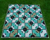 This 3 page pattern includes detailed instructions with color diagrams. Each block in this pattern is composed of one large bowtie and two smaller bowties nestled together! While it might look complicated, the basic skills needed for this block are as follows: half-square triangles, stitch and flip corners, and making four patches. If you're a confident beginner, this is a great option for you!