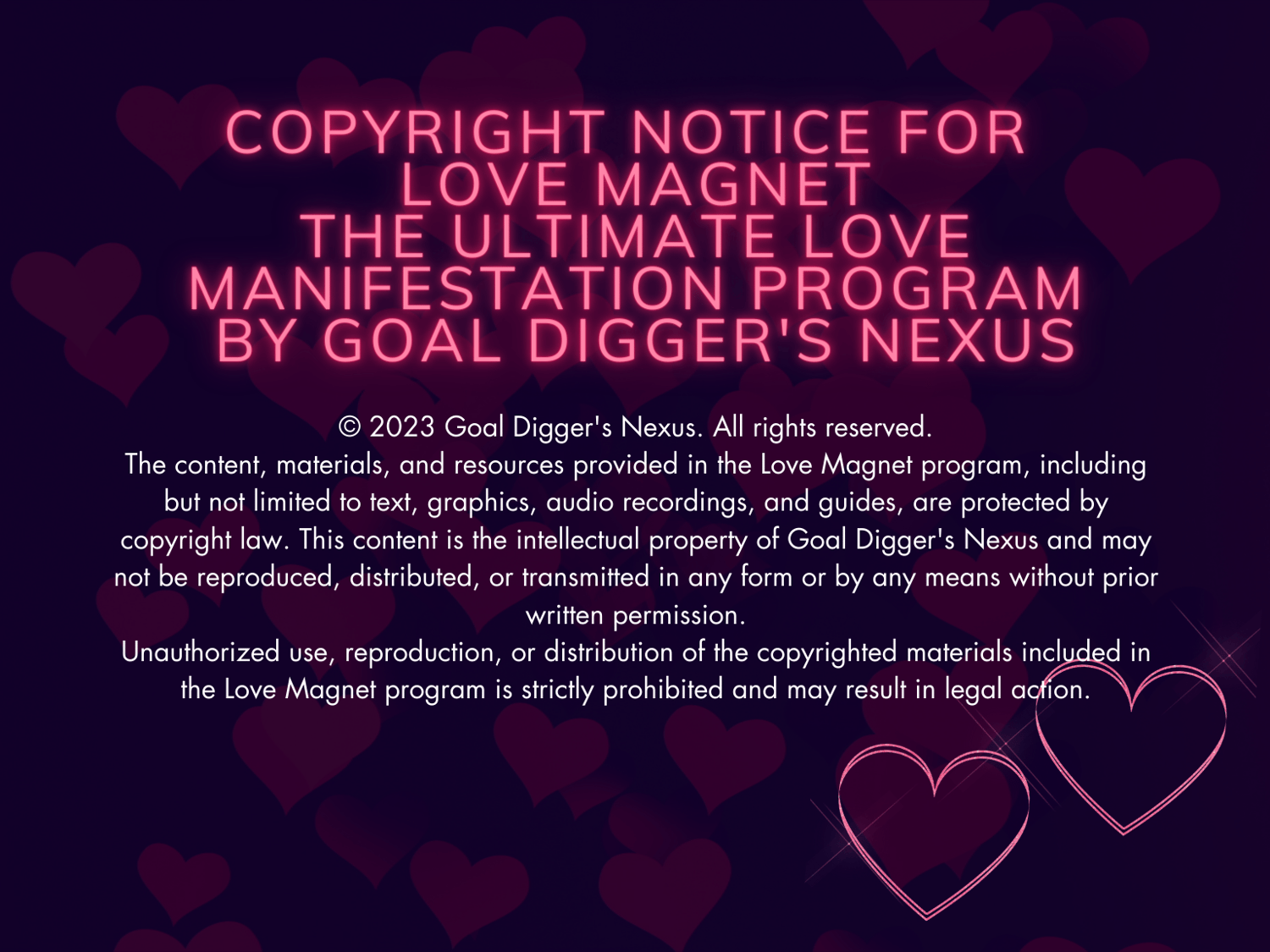 In order for you to get or manifest your desired outcome you need to remove the weeds in your subconscious mind the core beliefs that contradict your desire and to do that you need Love Magnet : The Ultimate Love Manifestation Program.