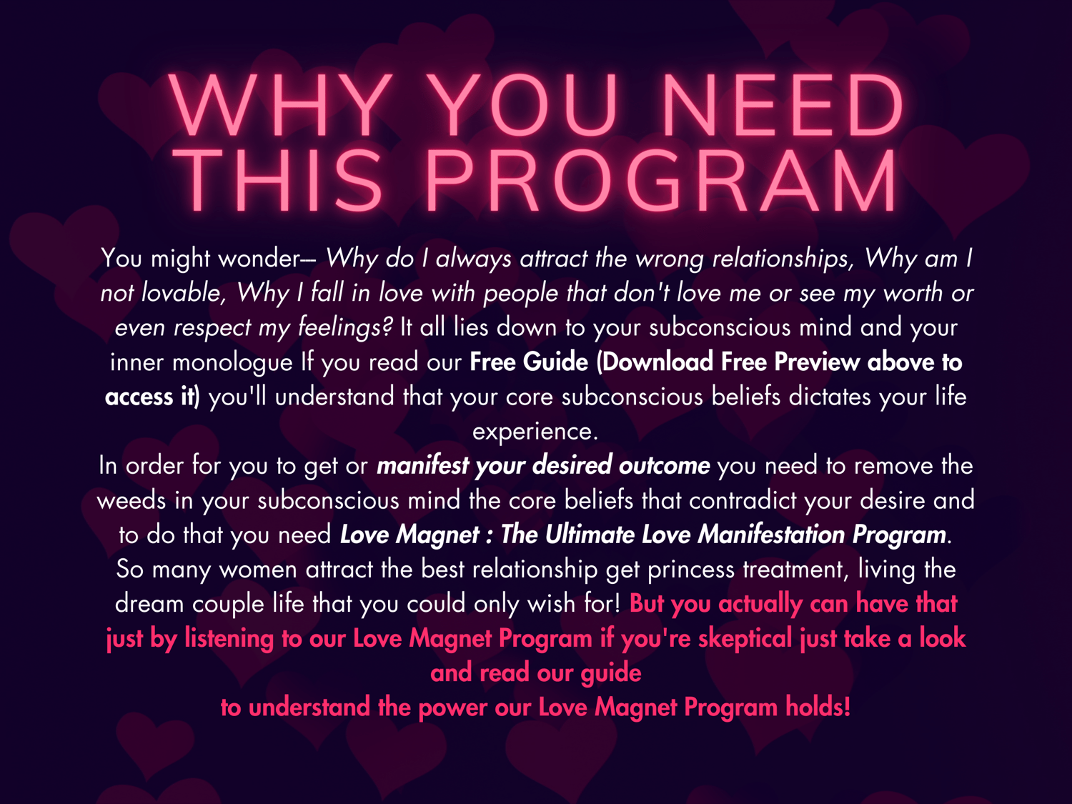 But you actually can have that just by listening to our Love Magnet Program if you're skeptical just take a look and read our guide to understand the power our Love Magnet Program holds!