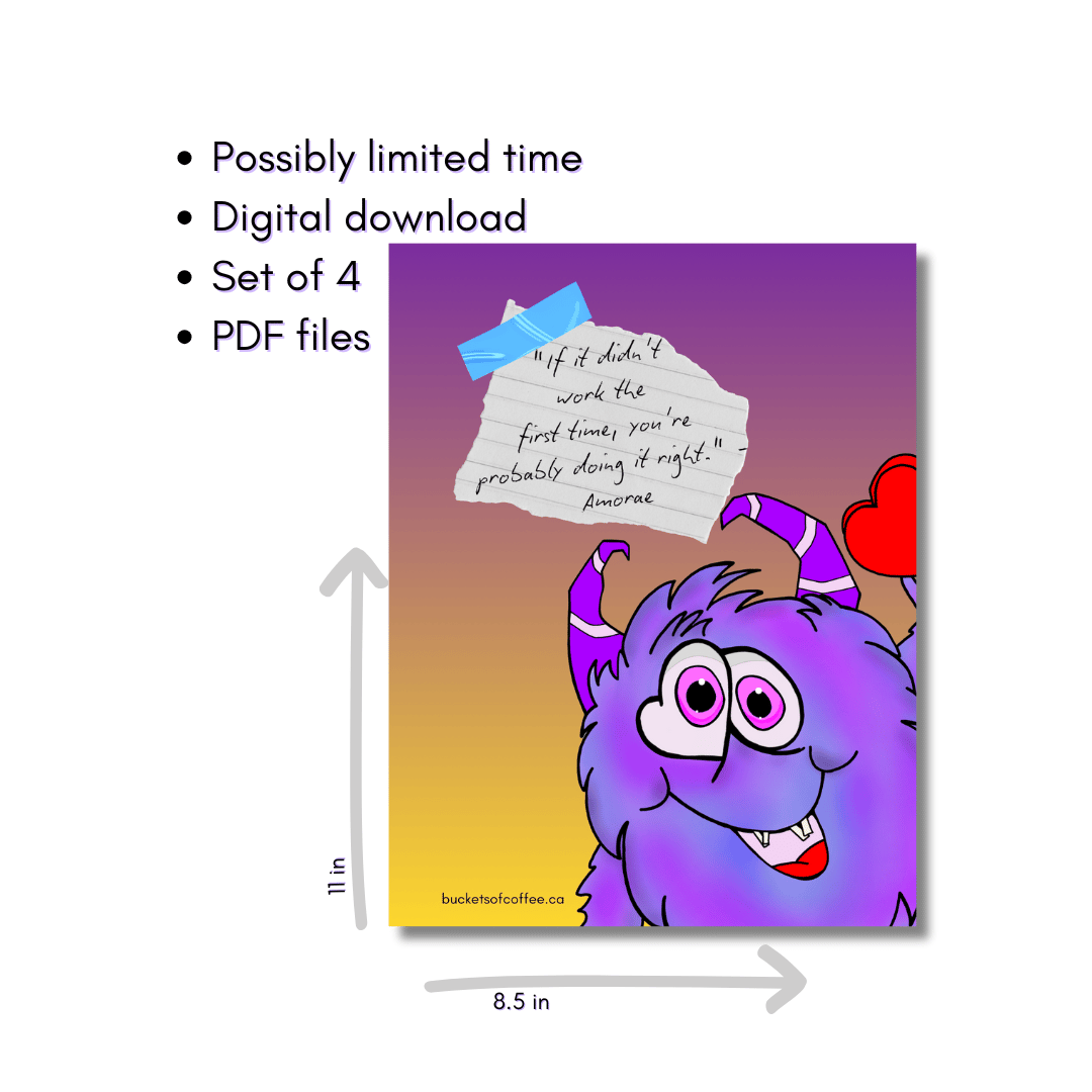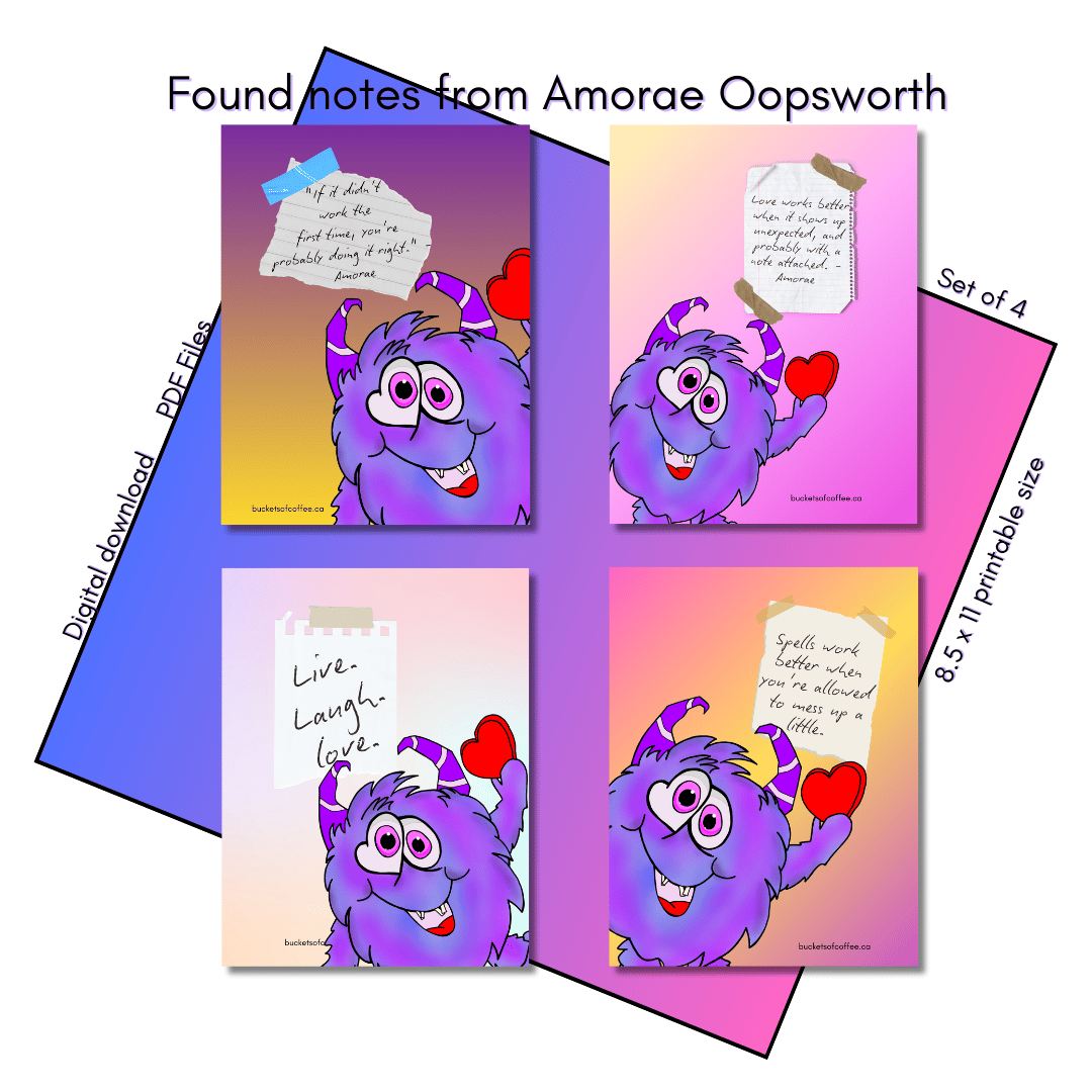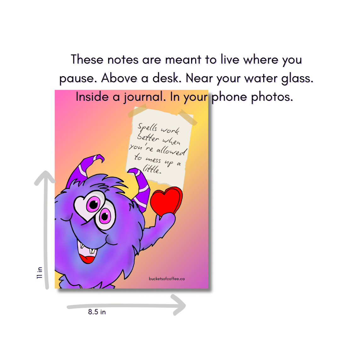 This digital print set includes 4 Amorae quote illustrations, each designed like a handwritten note taped to the shelves of curiosities. They’re imperfect on purpose. Gentle on the eyes. Quietly powerful.