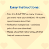 - Kids can answer fun prompts and draw pictures about their dad.