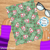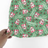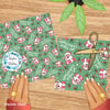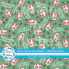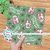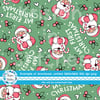Sweet pink santas with candy canes, holly berries and hearts on mint green.