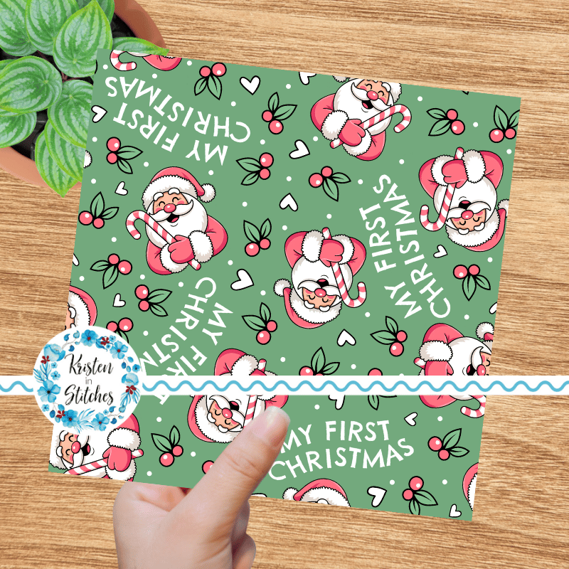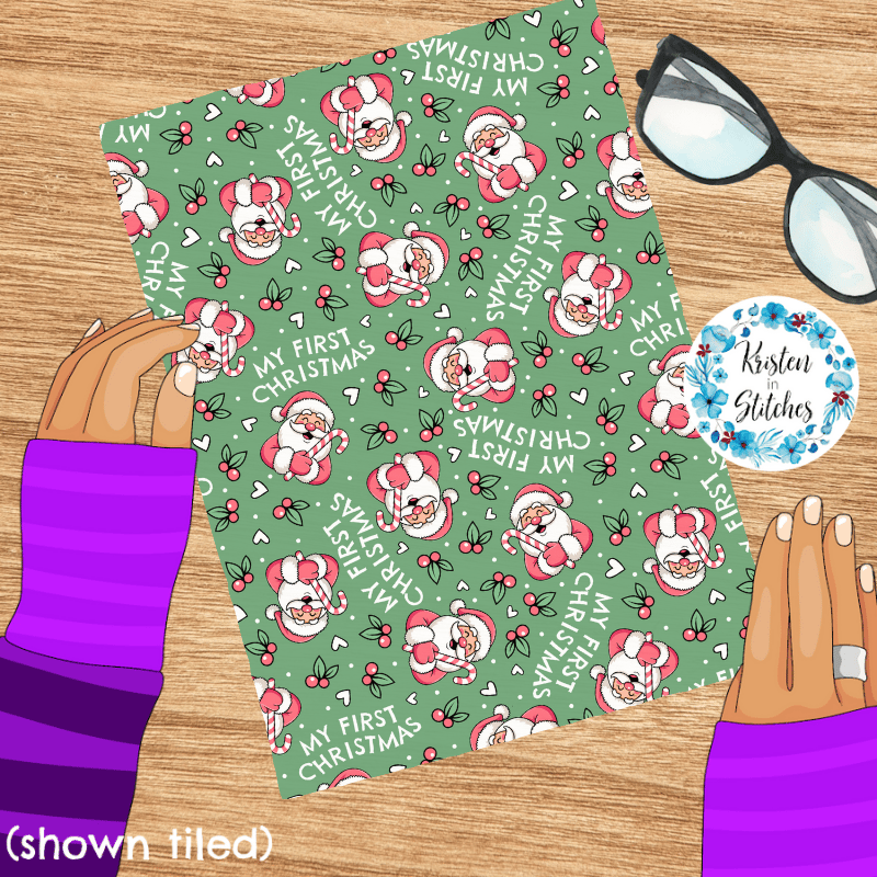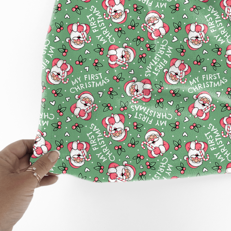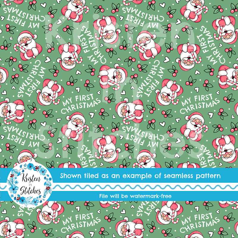 My First Christmas Seamless Pattern, Baby's 1st, Pink Santa Claus in Mint