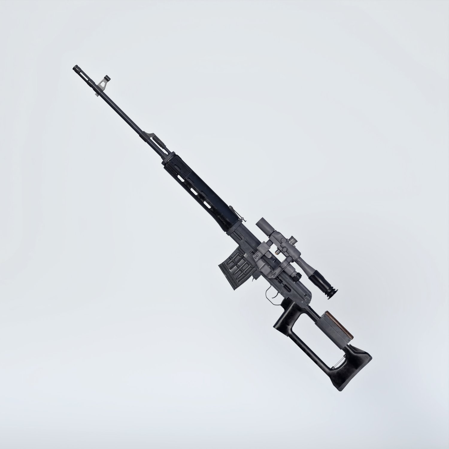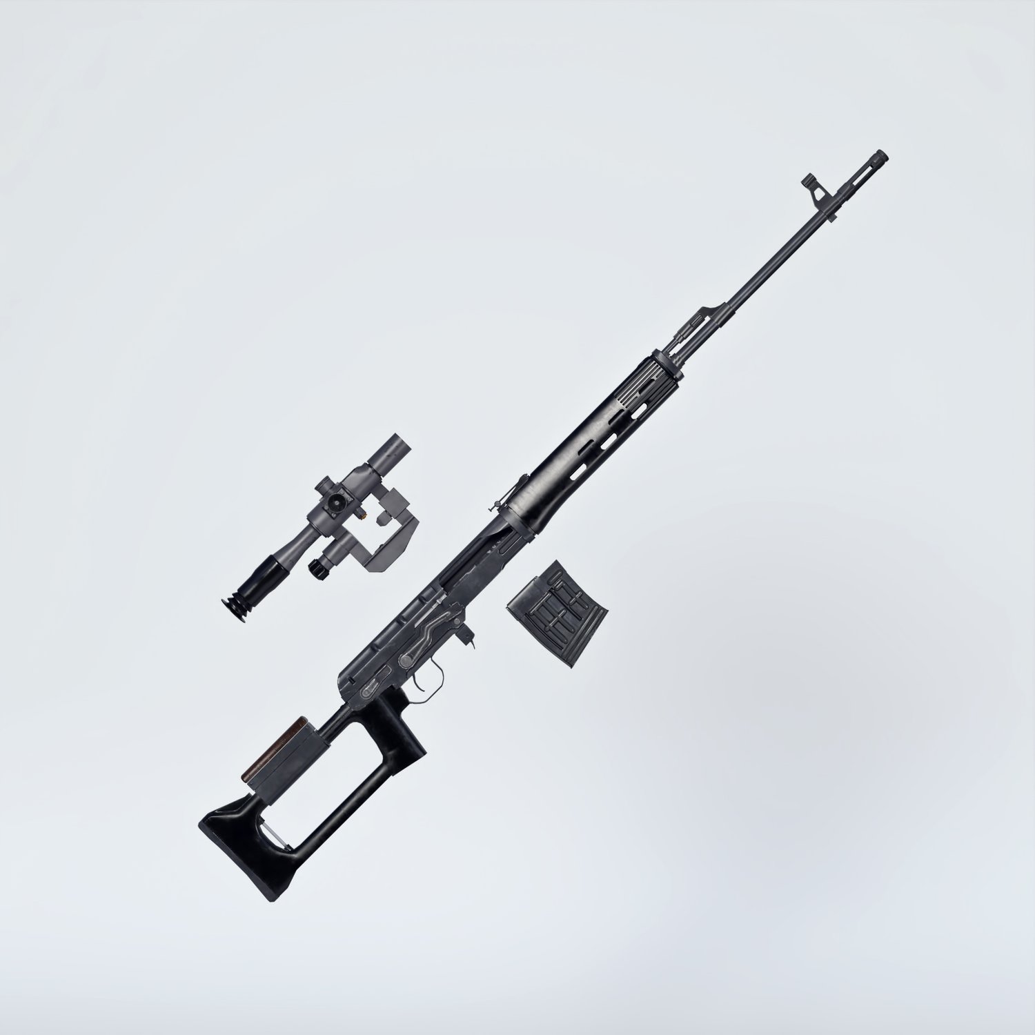 One of the first (if not the first) designated marksman rifles in the world. Rigged and converted for use with DAZ. Used not only by spetsnaz and other special forces, but also regular soldiers of the squad. Being a soviet design, it's used until these days in various battlefields around the world. Trigger, safety, bolt, etc also rigged for more realistic pictures. Includes a scope for various porpoises and pictures.