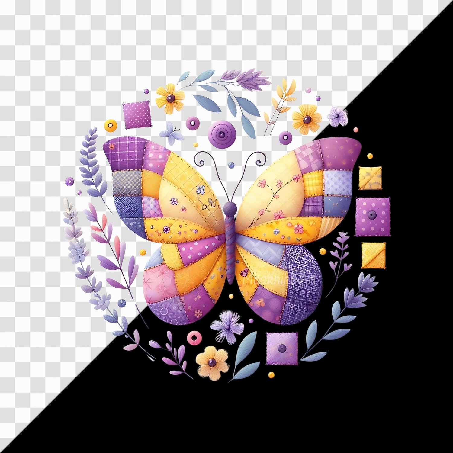 This digital product includes 30 images of Patchwork Butterfly in PNG Transparent format, 300 dpi, 4096x4096 px size.