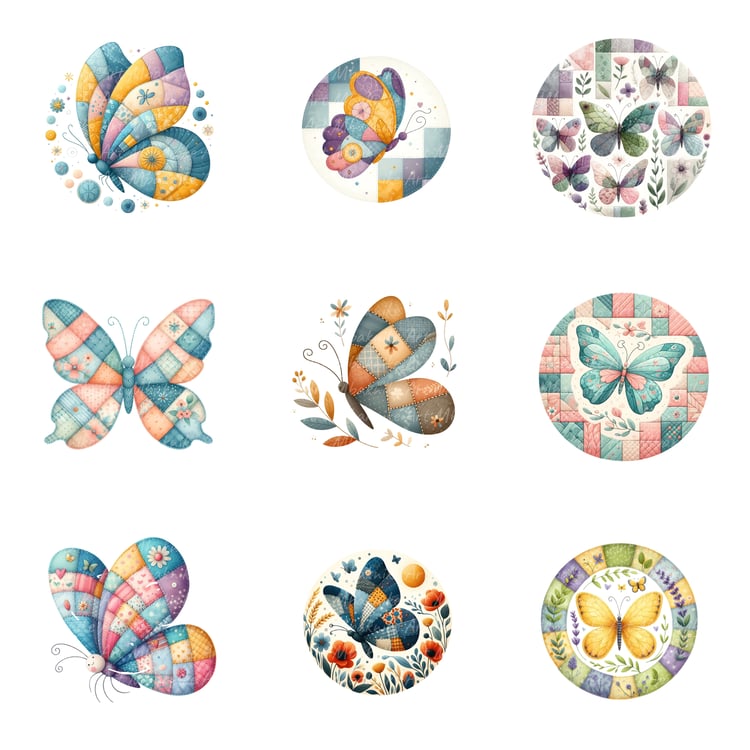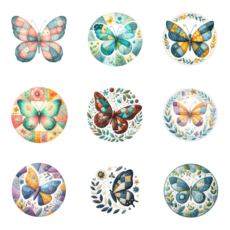 30 High-Resolution Images Patchwork Butterfly + Special Gift