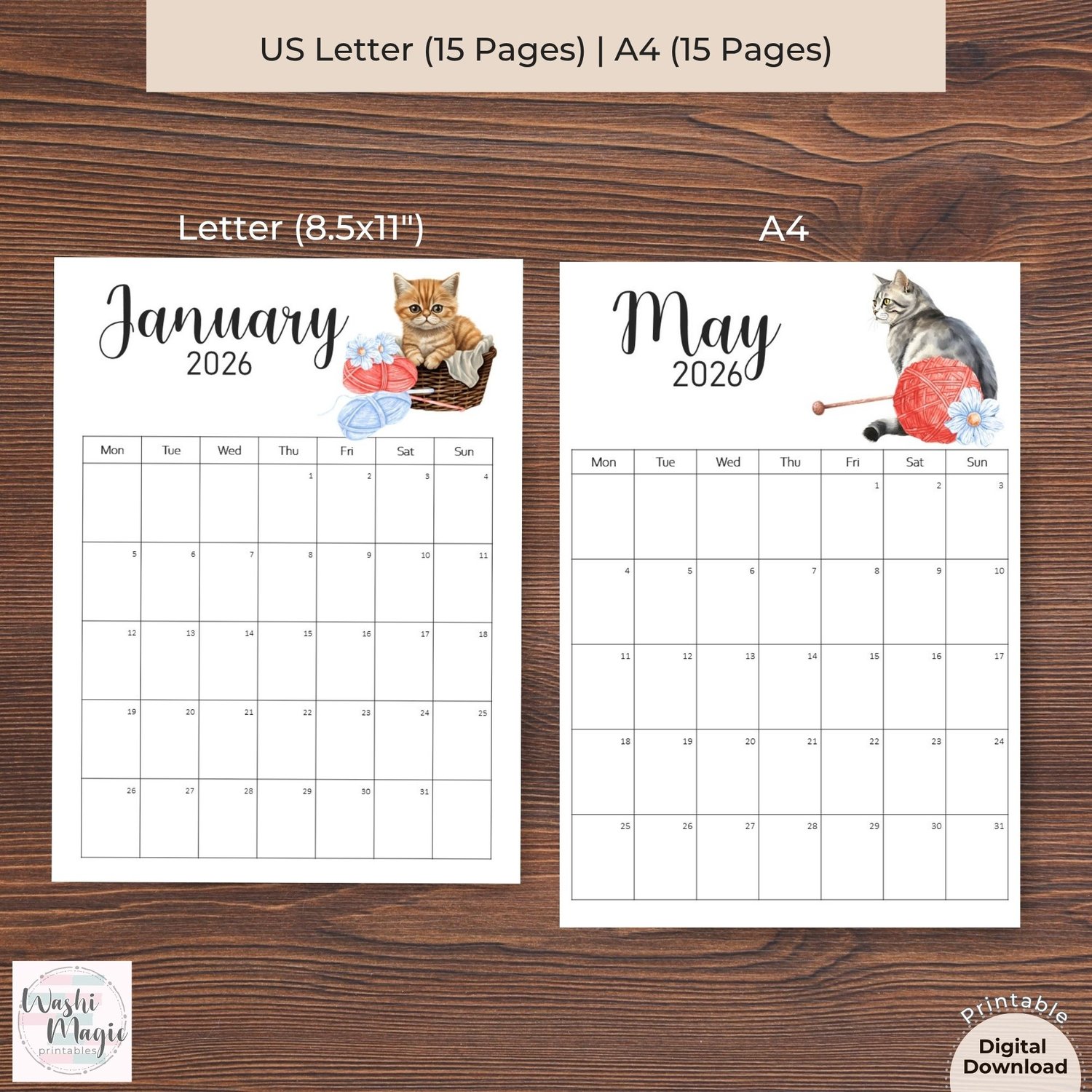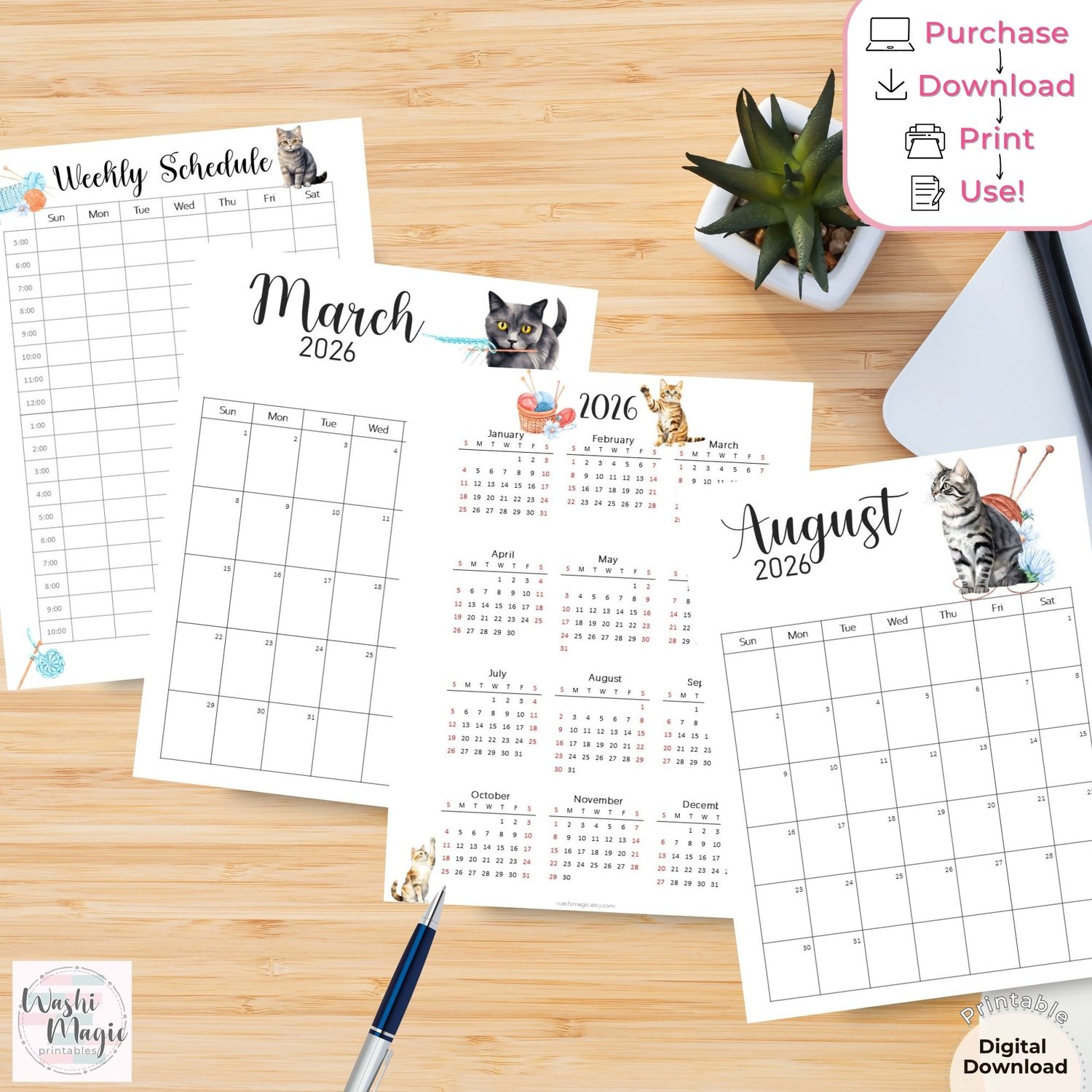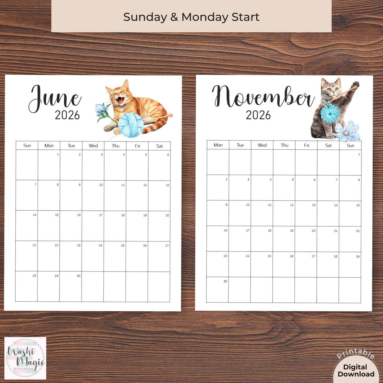 Embrace your love for cats and knitting with our 2026 dated calendar printable! This charming portrait-style calendar is perfect for organizing your work planner, school planner, homeschool planner, or family planner.