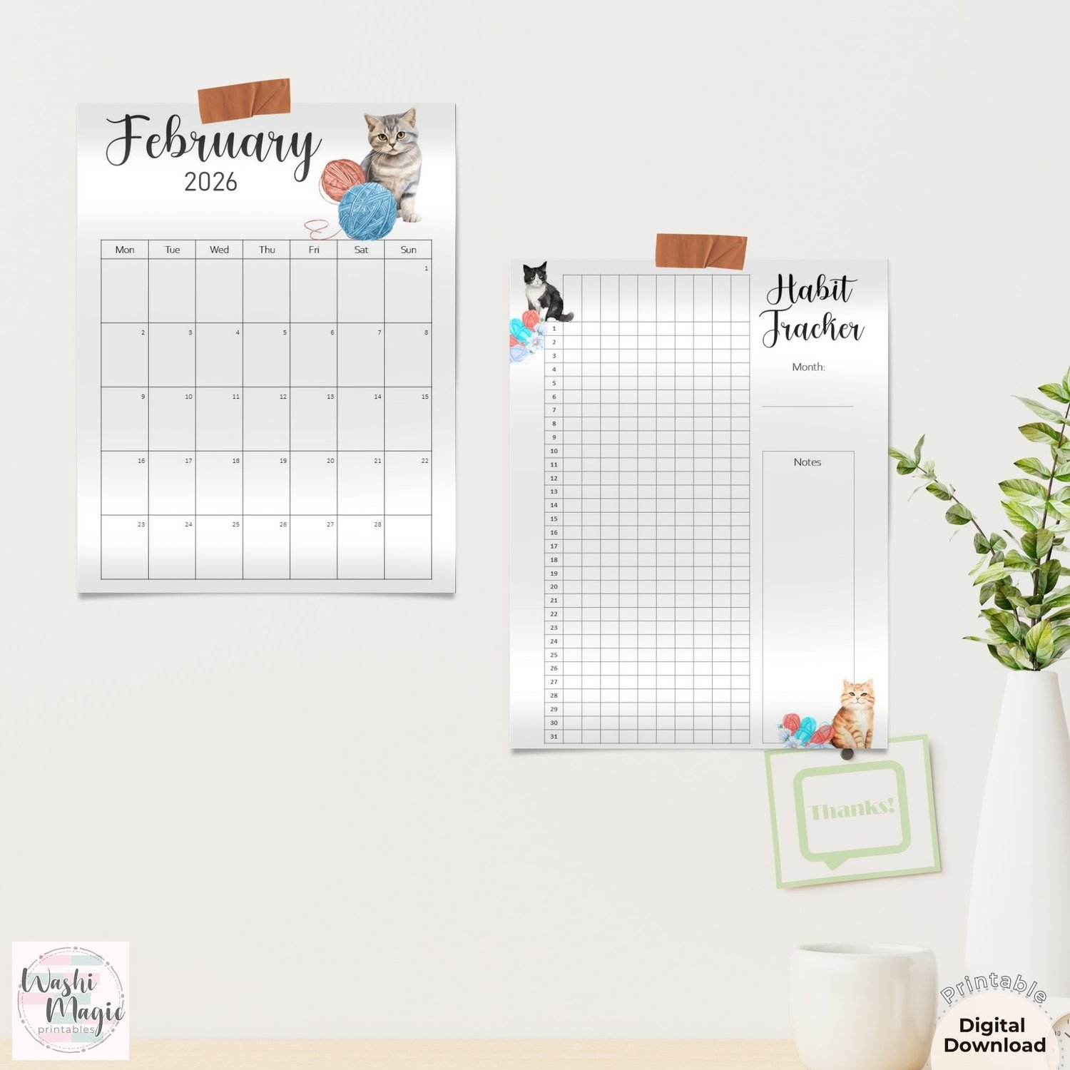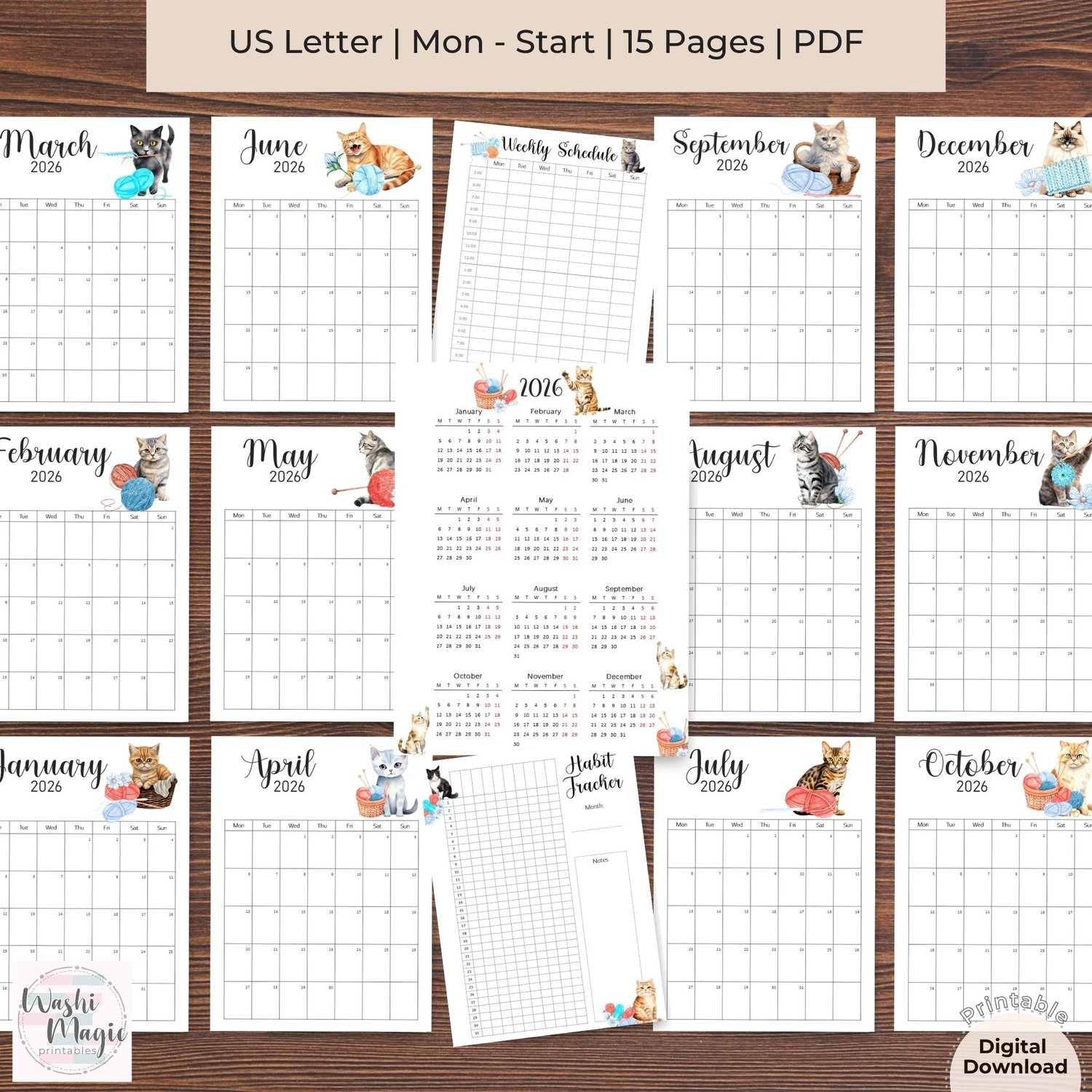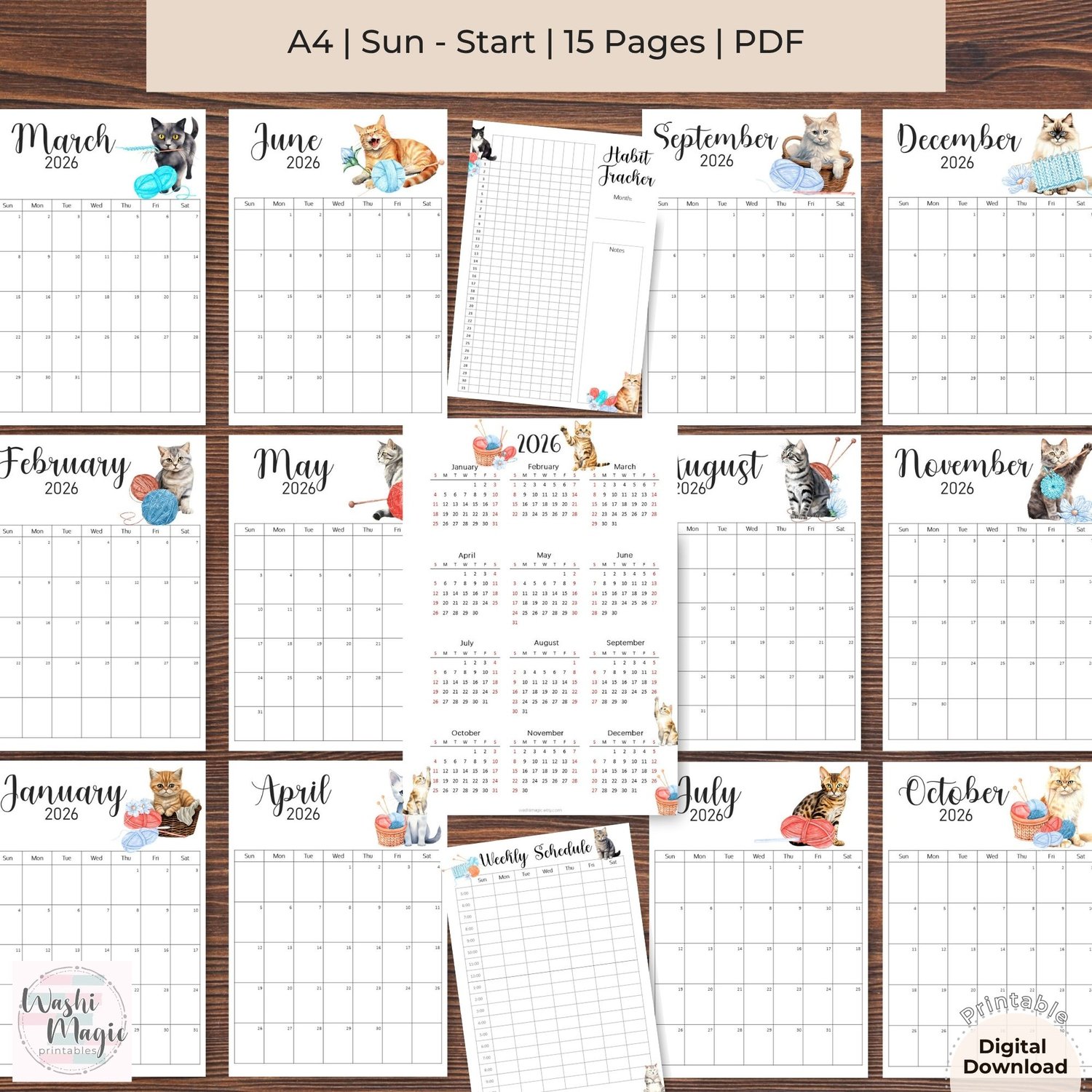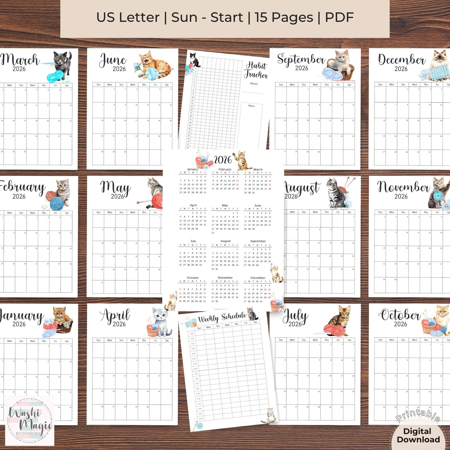 Embrace your love for cats and knitting with our 2026 dated calendar printable! This charming portrait-style calendar is perfect for organizing your work planner, school planner, homeschool planner, or family planner.