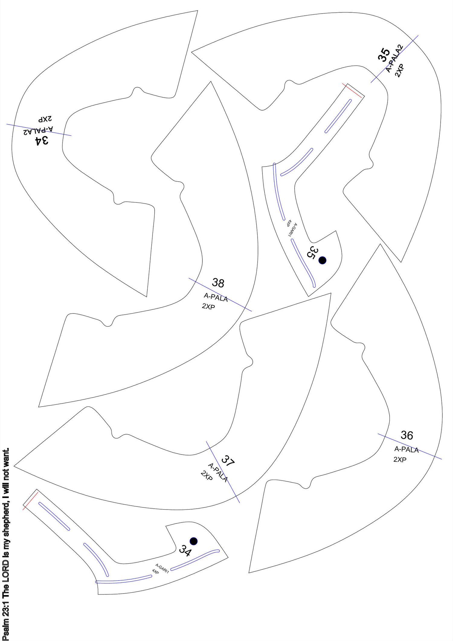 patrones en PDF hoja A3 conprimido WinRar, serie del 34 AL 39.