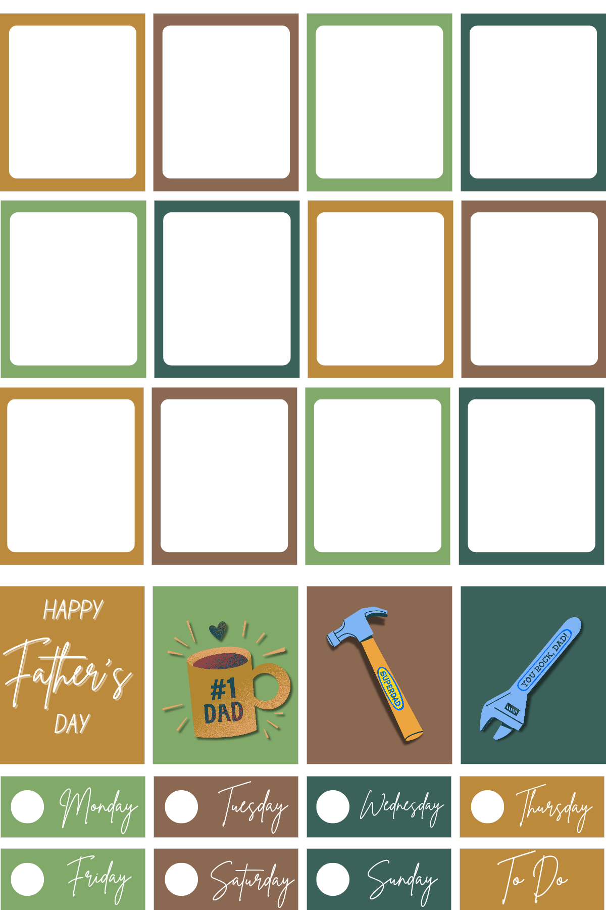 Celebrate Father’s Day all week long with this Father’s Day-themed weekly planner kit. Whether you're organizing plans, marking special moments, or adding a personal touch to your journal, this set includes everything you need to keep your week stylish and functional.